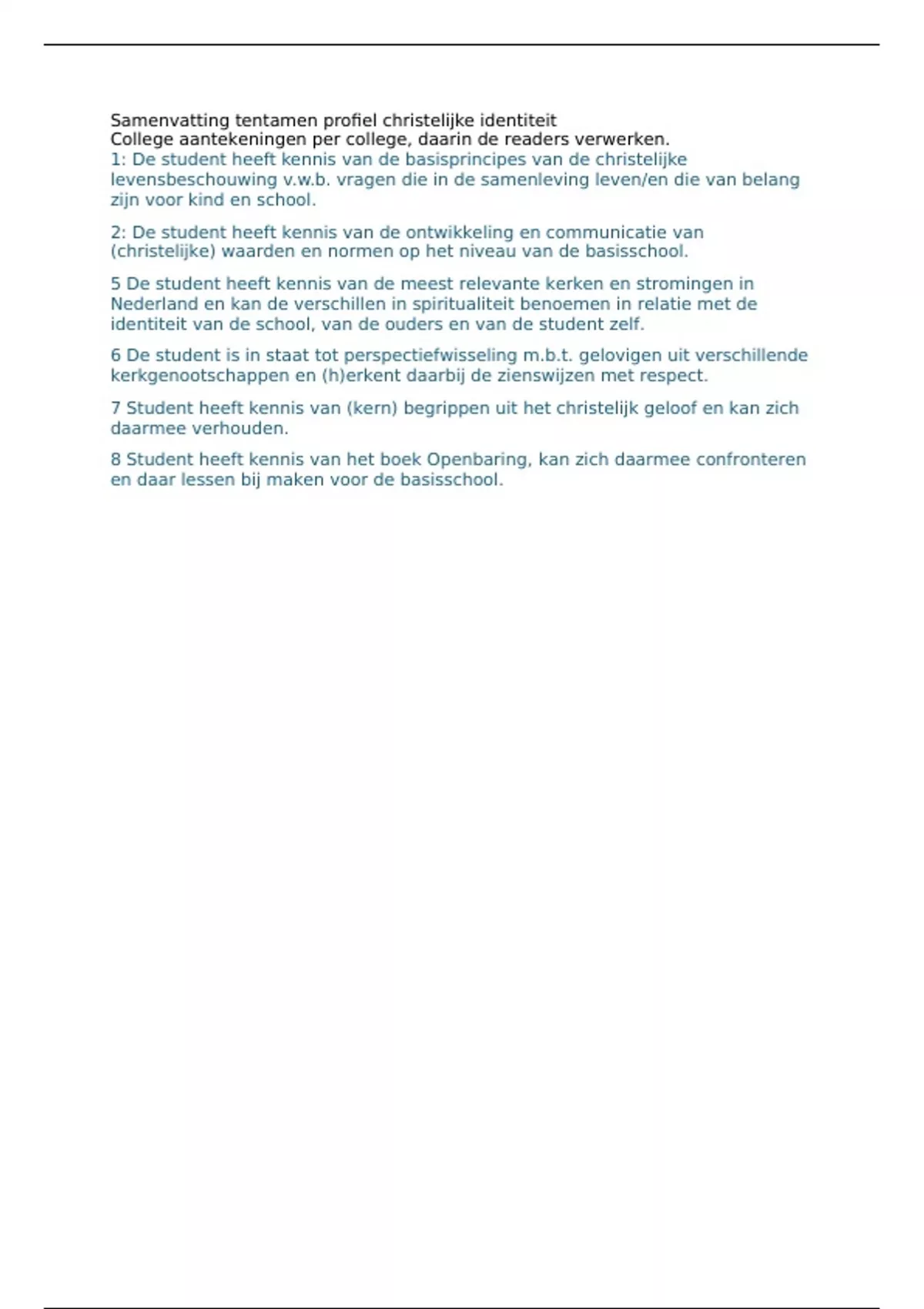 Samenvatting tentamen profiel christelijke identiteit