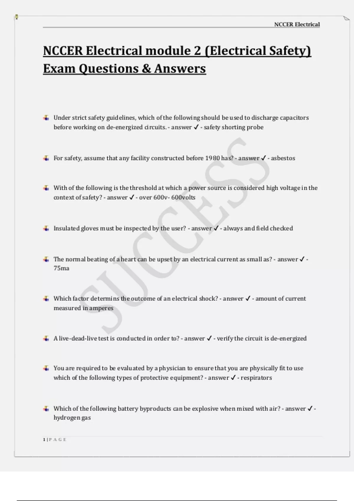 NCCER Electrical module 2 (Electrical Safety) Exam Questions & Answers