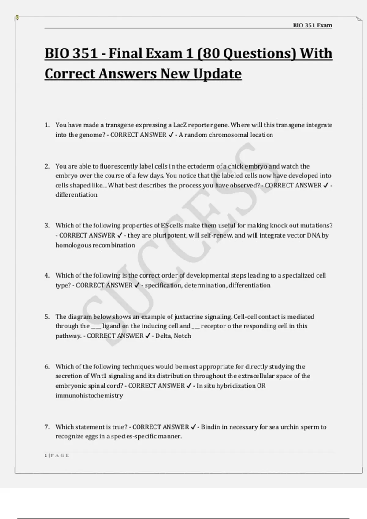 BIO 351 - Final Exam 1 (80 Questions) With