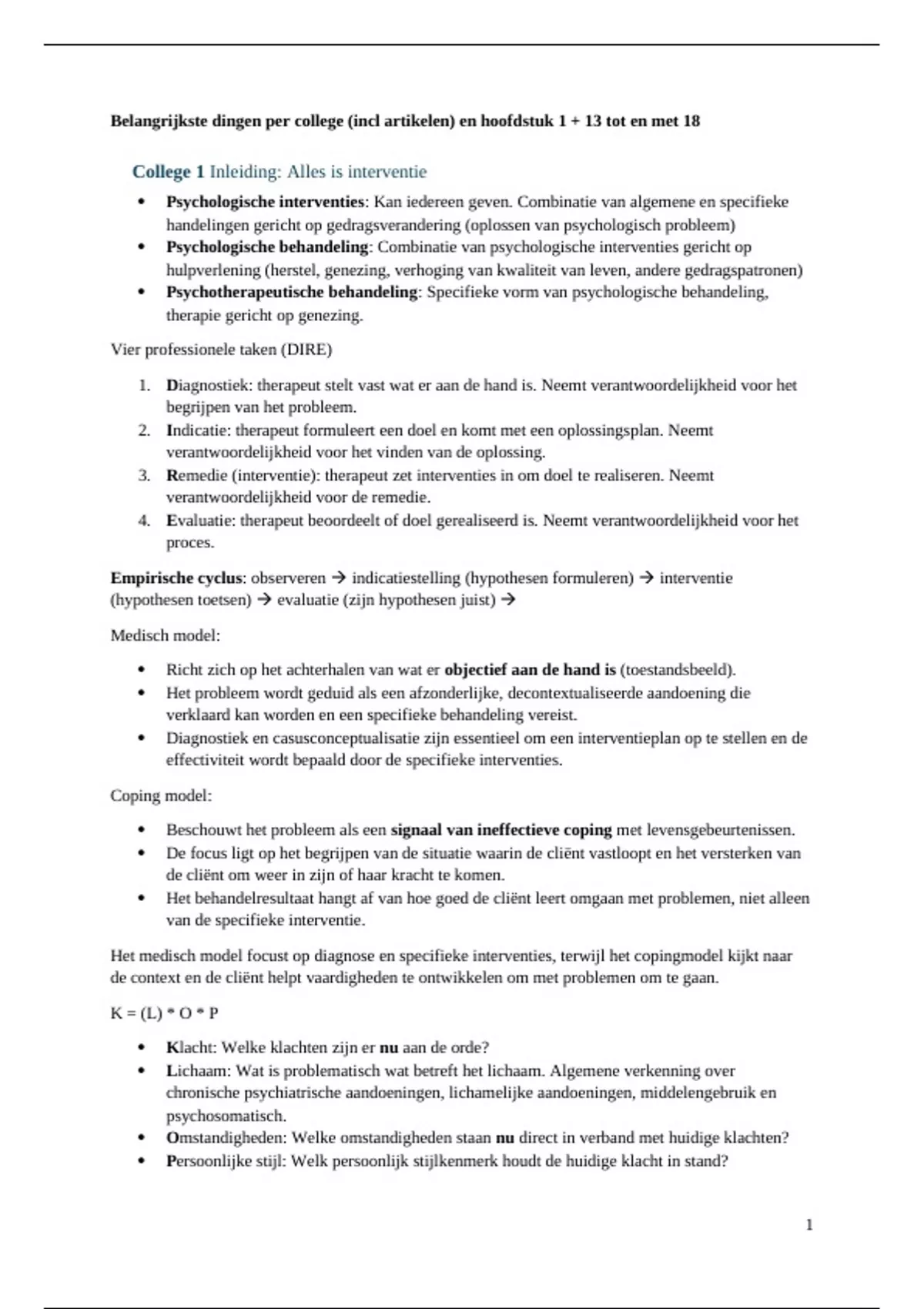 Psychologische interventies beknopte samenvatting colleges/workshop en video's