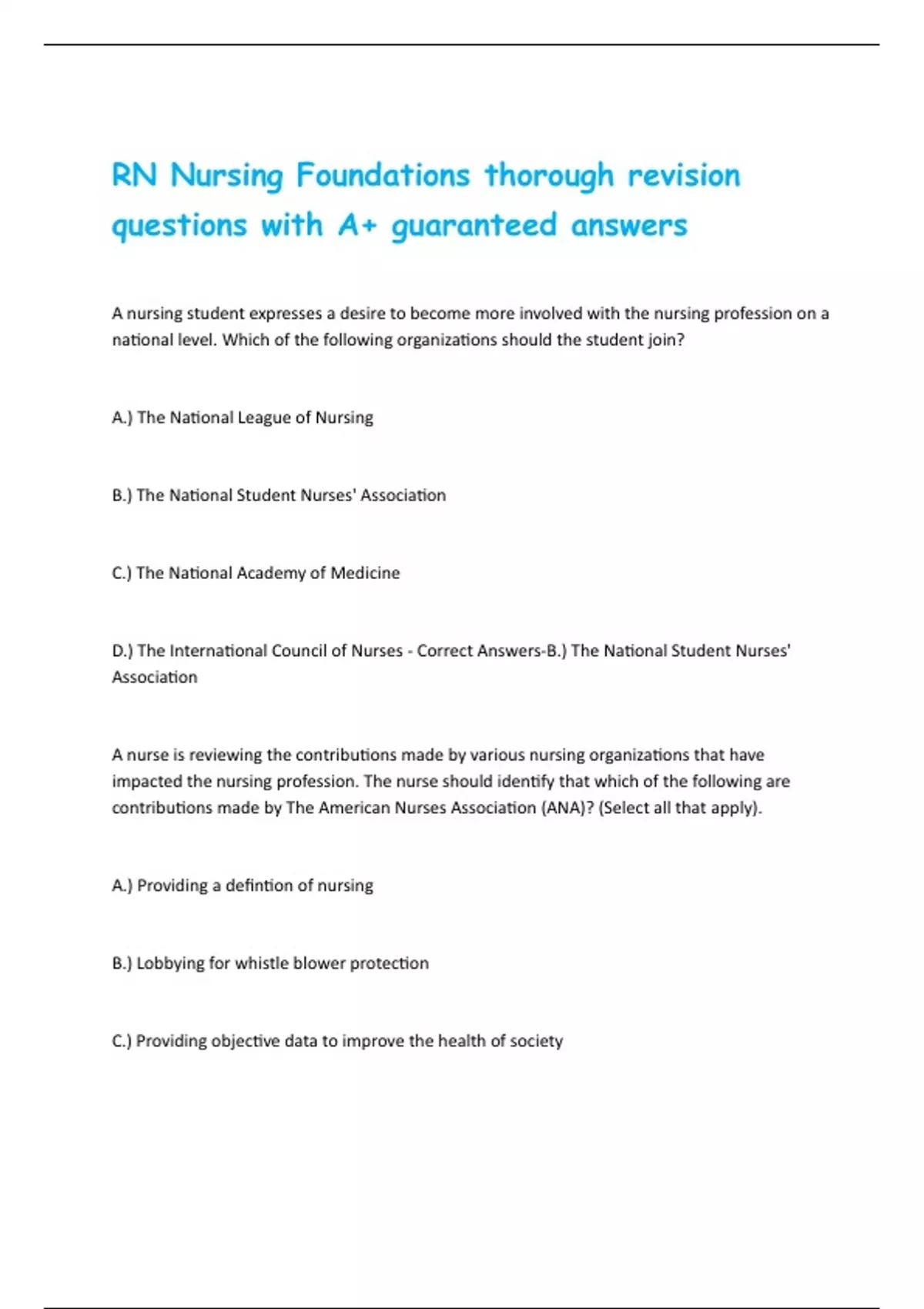 D.) The International Council of Nurses - Correct Answers-B.) The National Student Nurses'