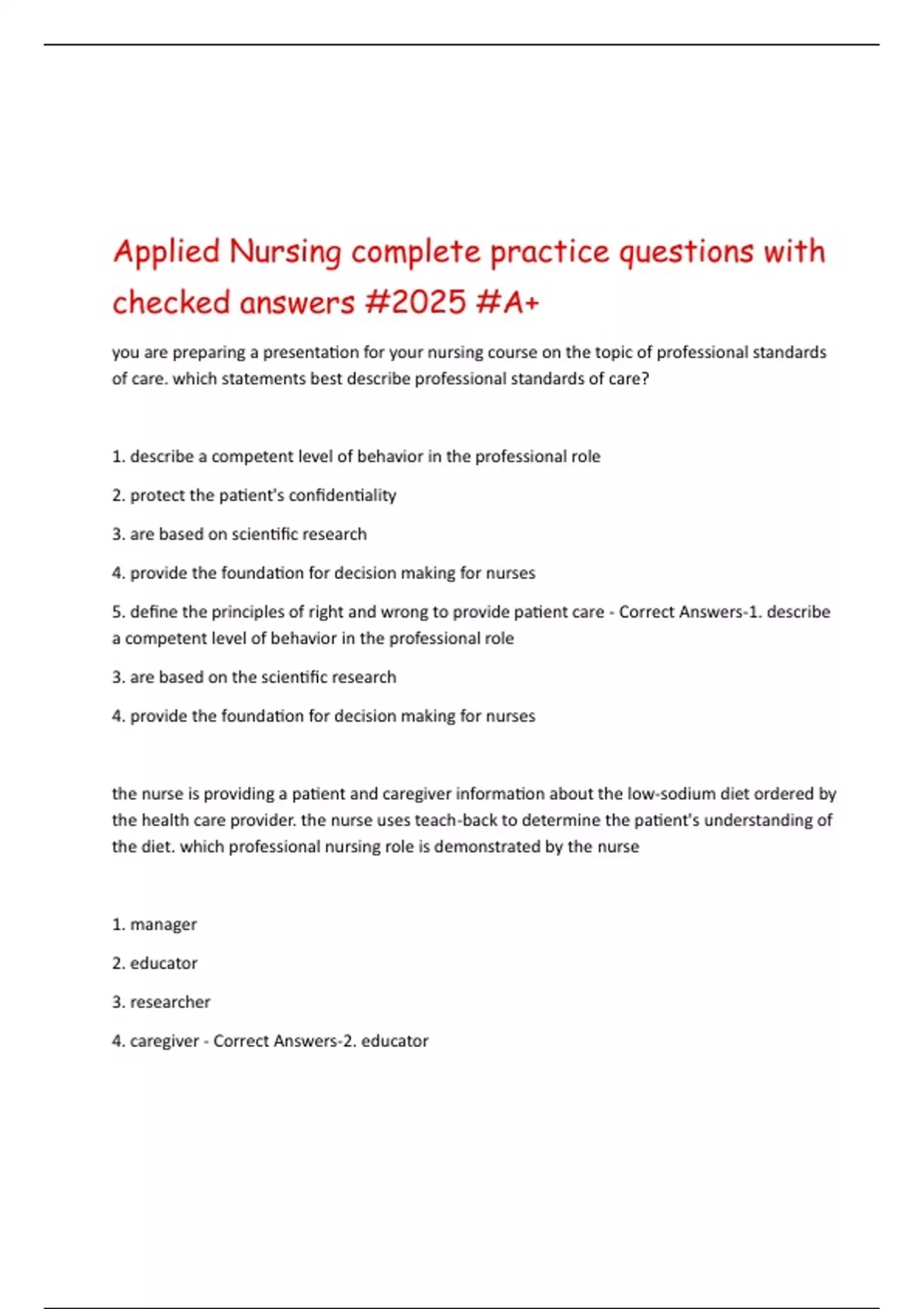 Exam of 15 pages for the course Applied nursing at Applied nursing (Applied Nursing)