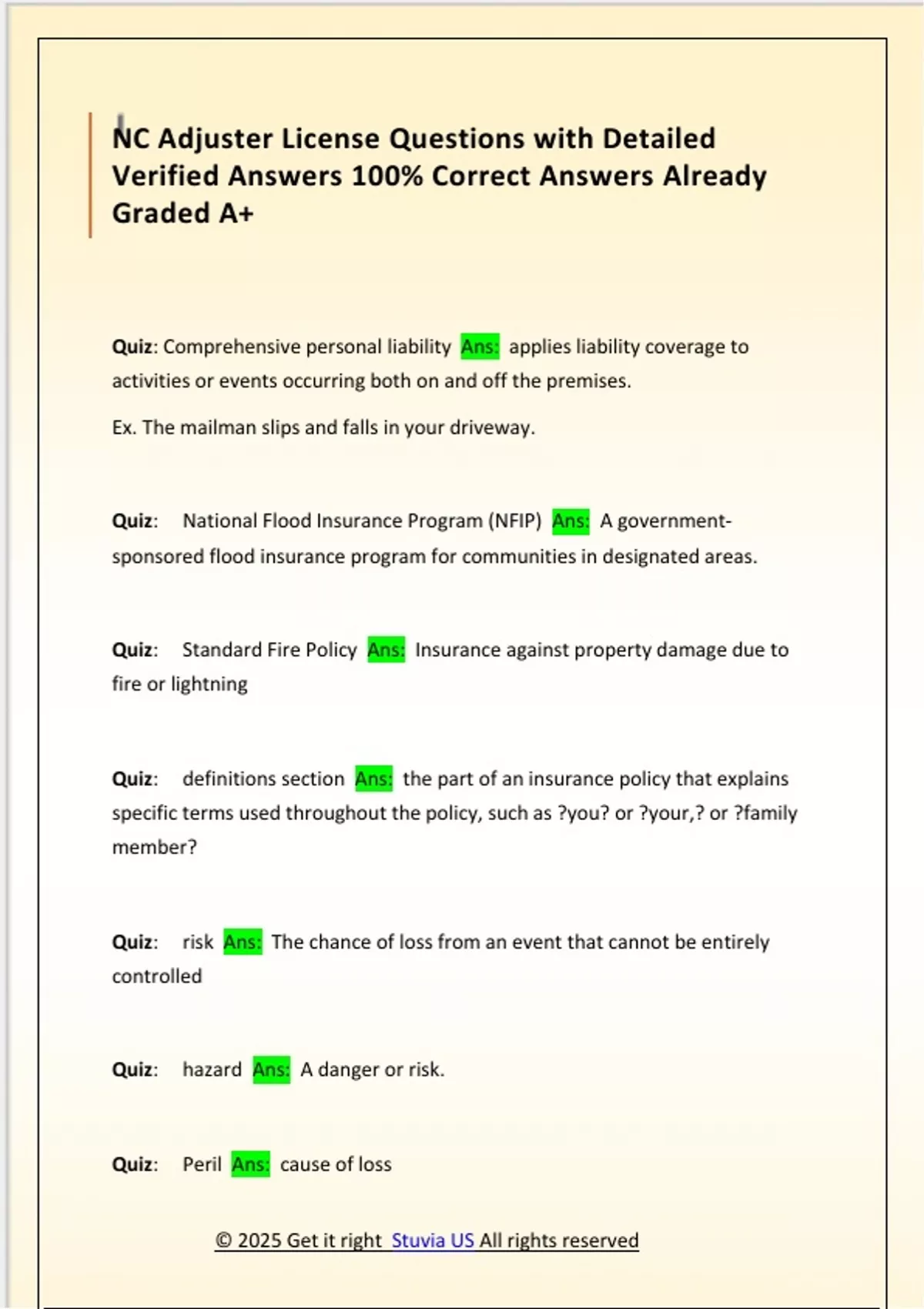 Quiz: Comprehensive personal liability Ans: applies liability coverage to