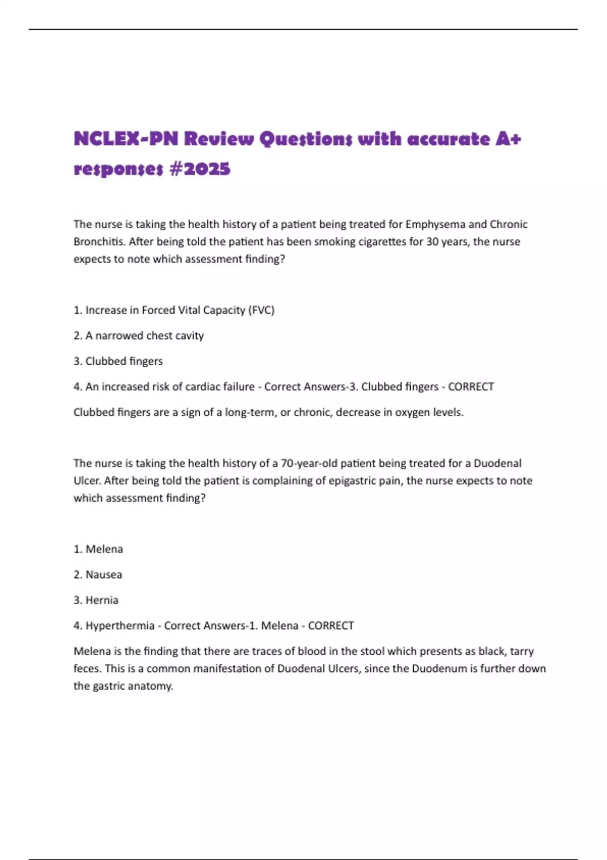 4. Hyperthermia - Correct Answers-1. Melena - CORRECT