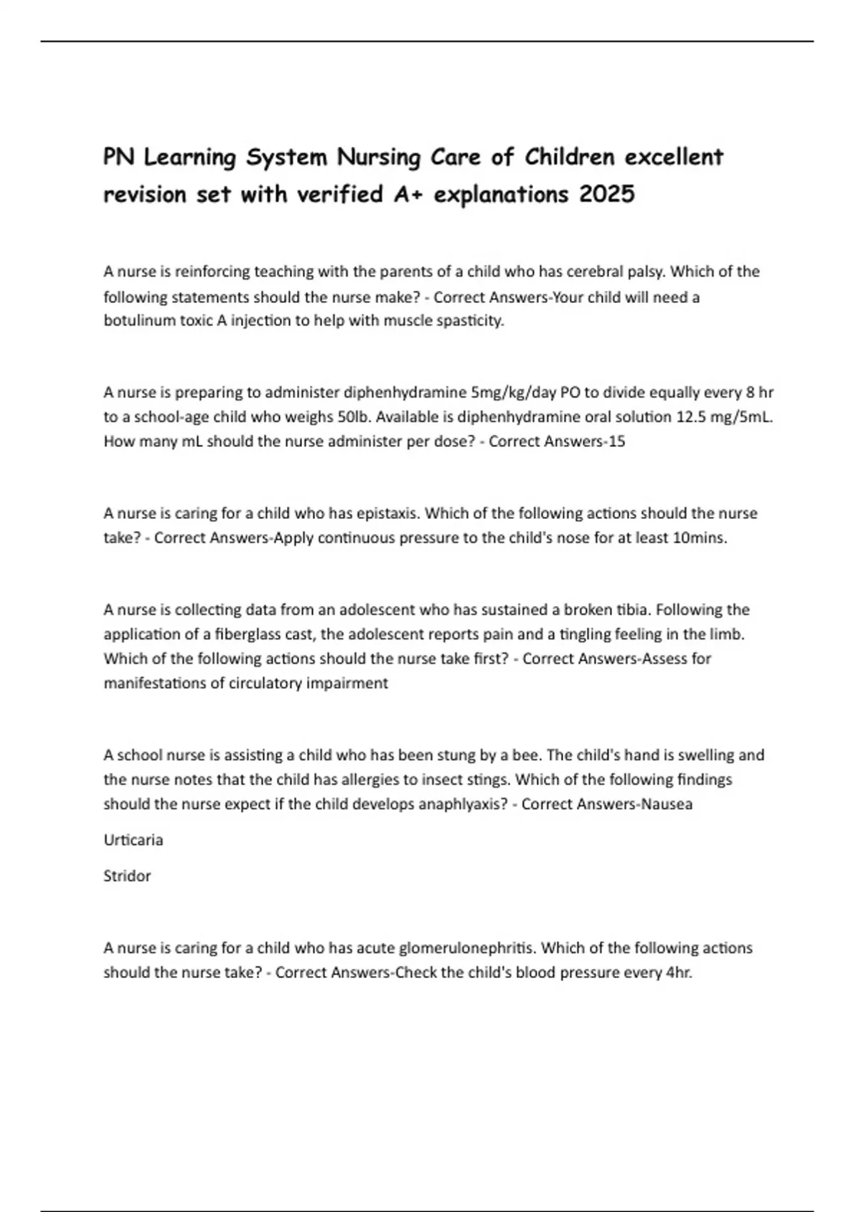take? - Correct Answers-Apply continuous pressure to the child's nose for at least 10mins.