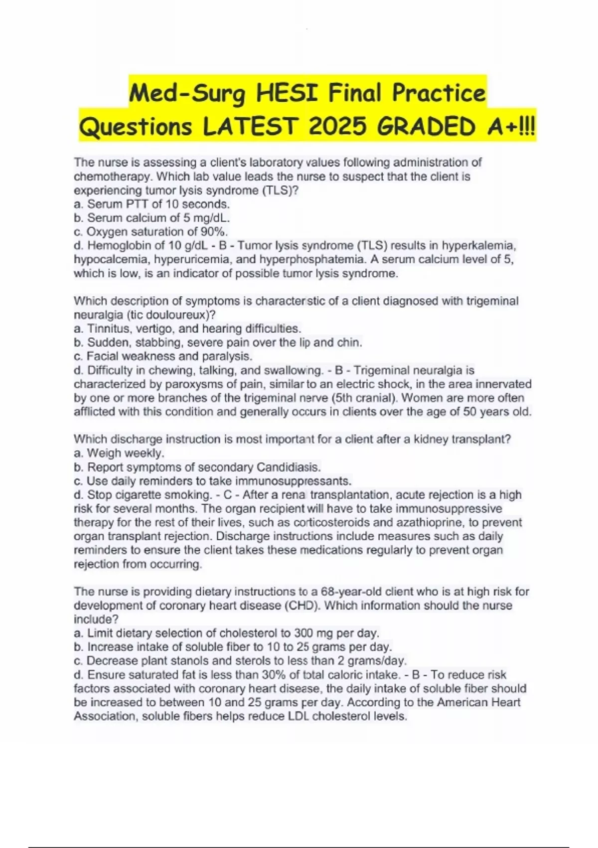 Med-Surg HESI Final Practice Questions LATEST 2025 GRADED A+!!!.