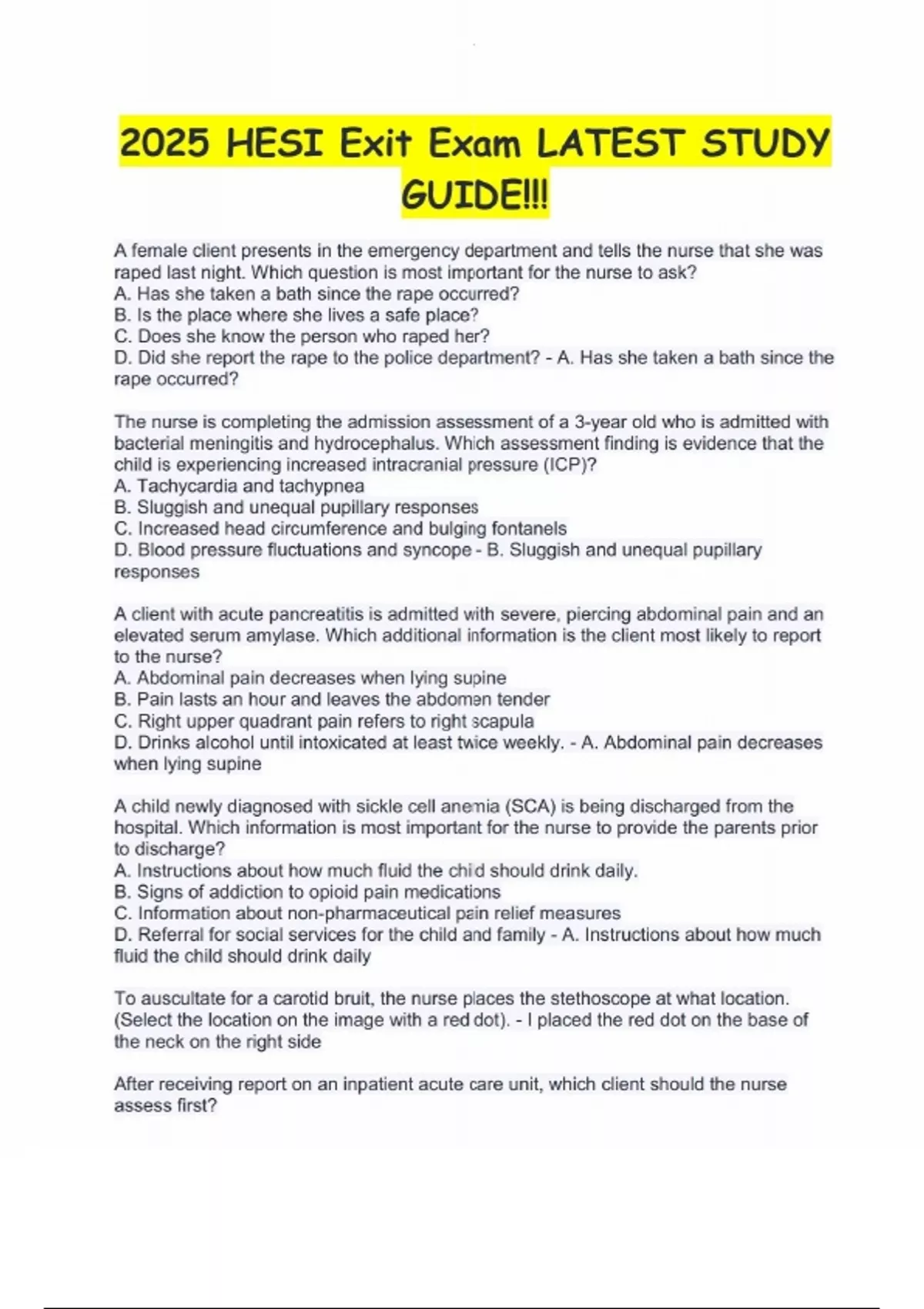 2025 HESI Exit Exam LATEST STUDY GUIDE!!! 2025 HESI Exit Exam LATEST STUDY GUIDE!!!