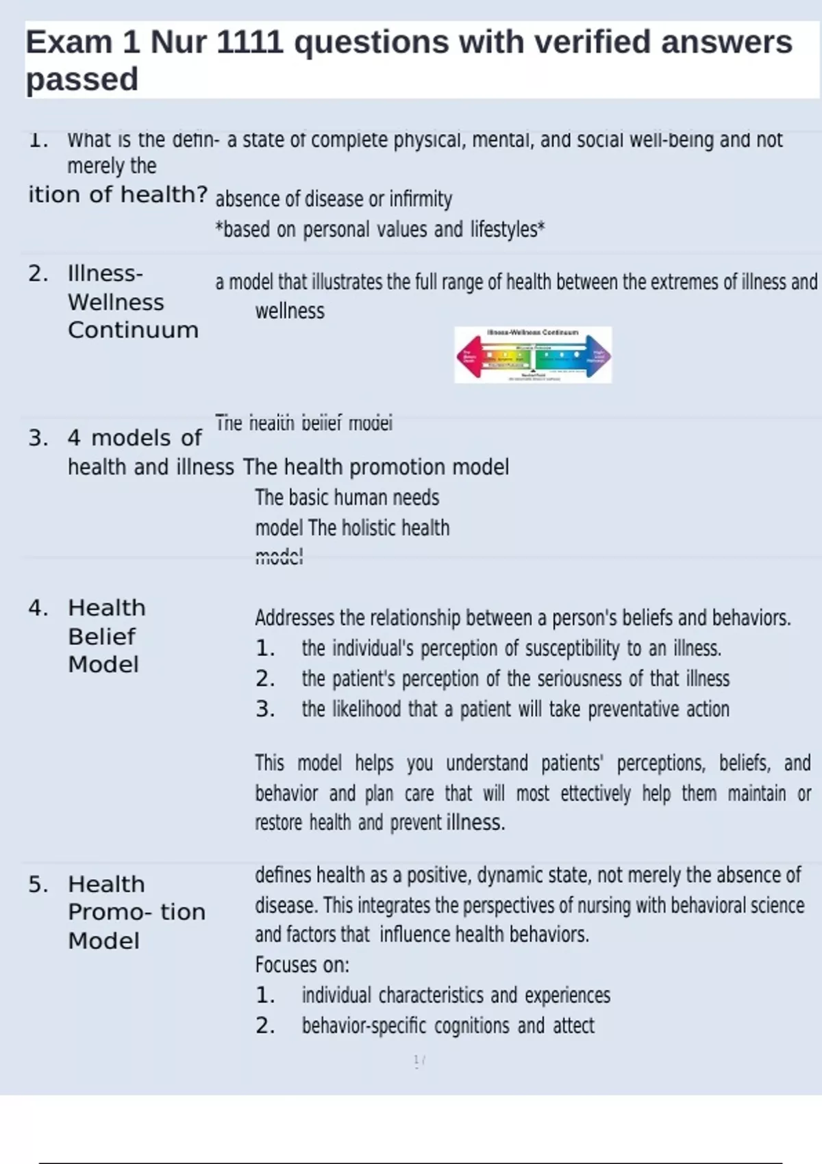 1. What is the defin- a state of complete physical, mental, and social well-being and not