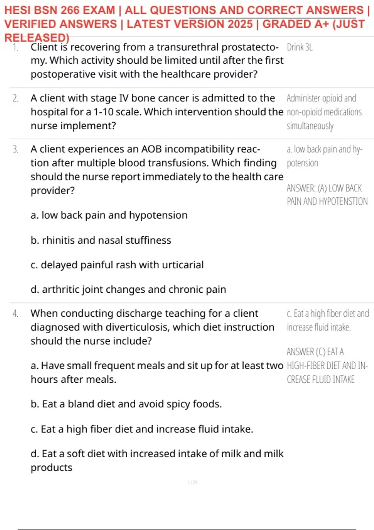 HESI BSN 266 EXAM | ALL QUESTIONS AND CORRECT ANSWERS |