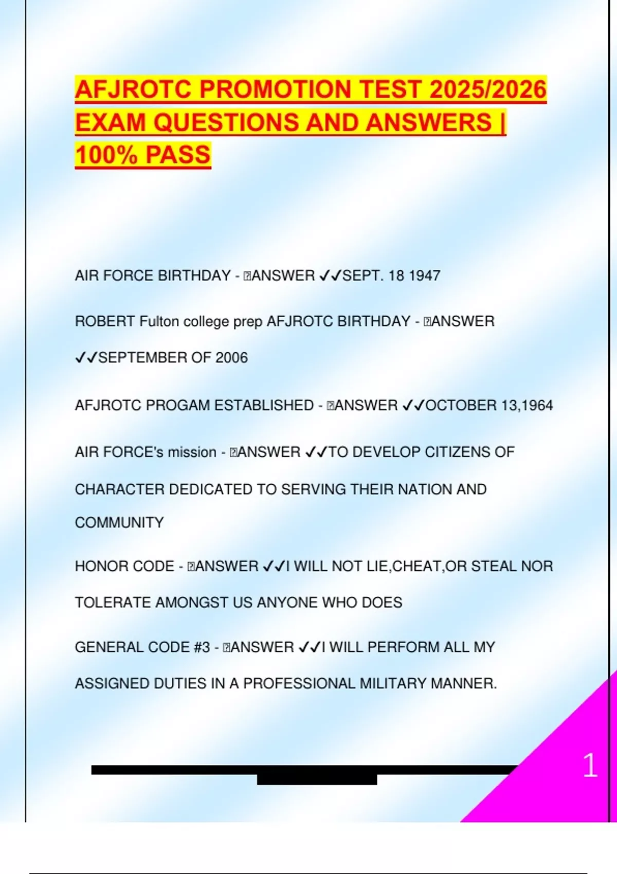 AFJROTC PROMOTION TEST 2025/2026