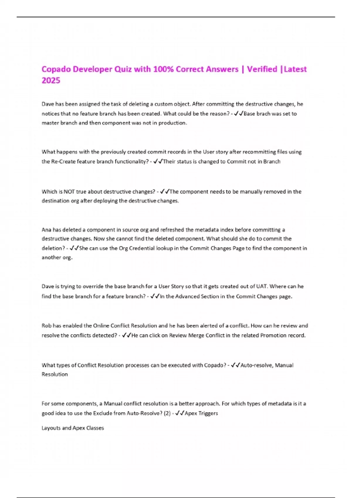 Copado Developer Quiz with 100% Correct Answers | Verified |Latest 2025
