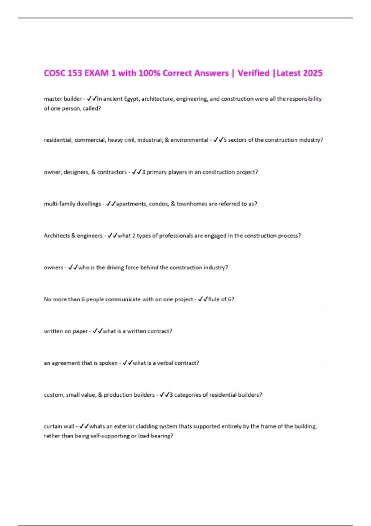 Package deal::: COSC 153 Exams with 100% Correct Answers | Verified |Latest 2025/2026