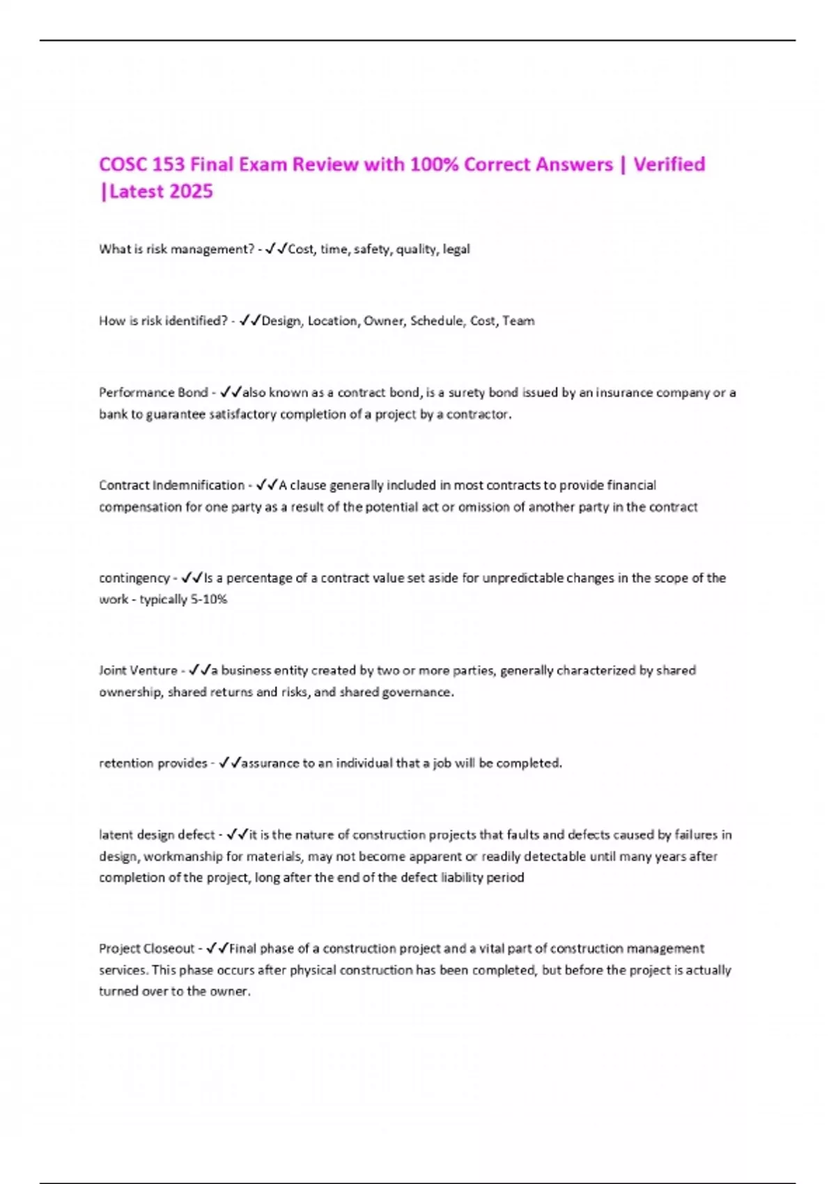COSC 153 Final Exam Review with 100% Correct Answers | Verified |Latest 2025
