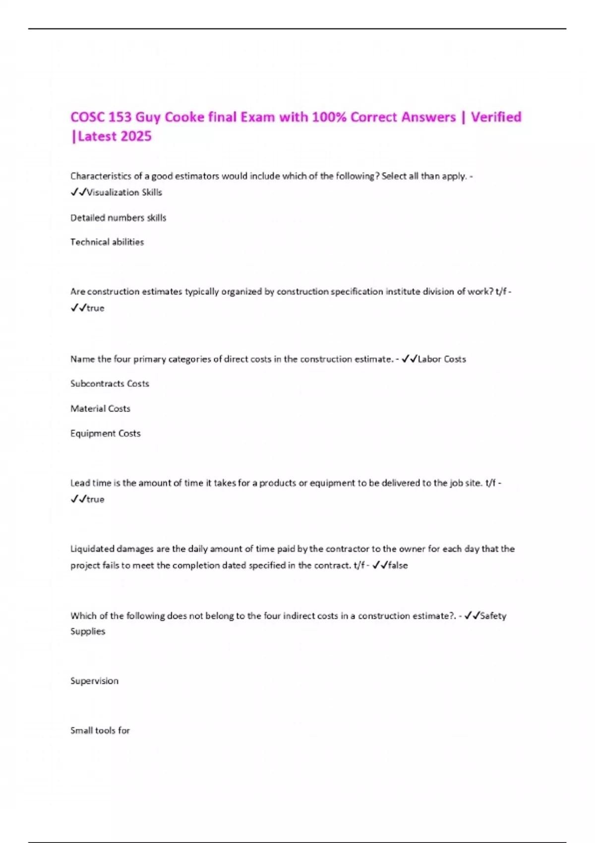 COSC 153 Guy Cooke final Exam with 100% Correct Answers | Verified |Latest 2025