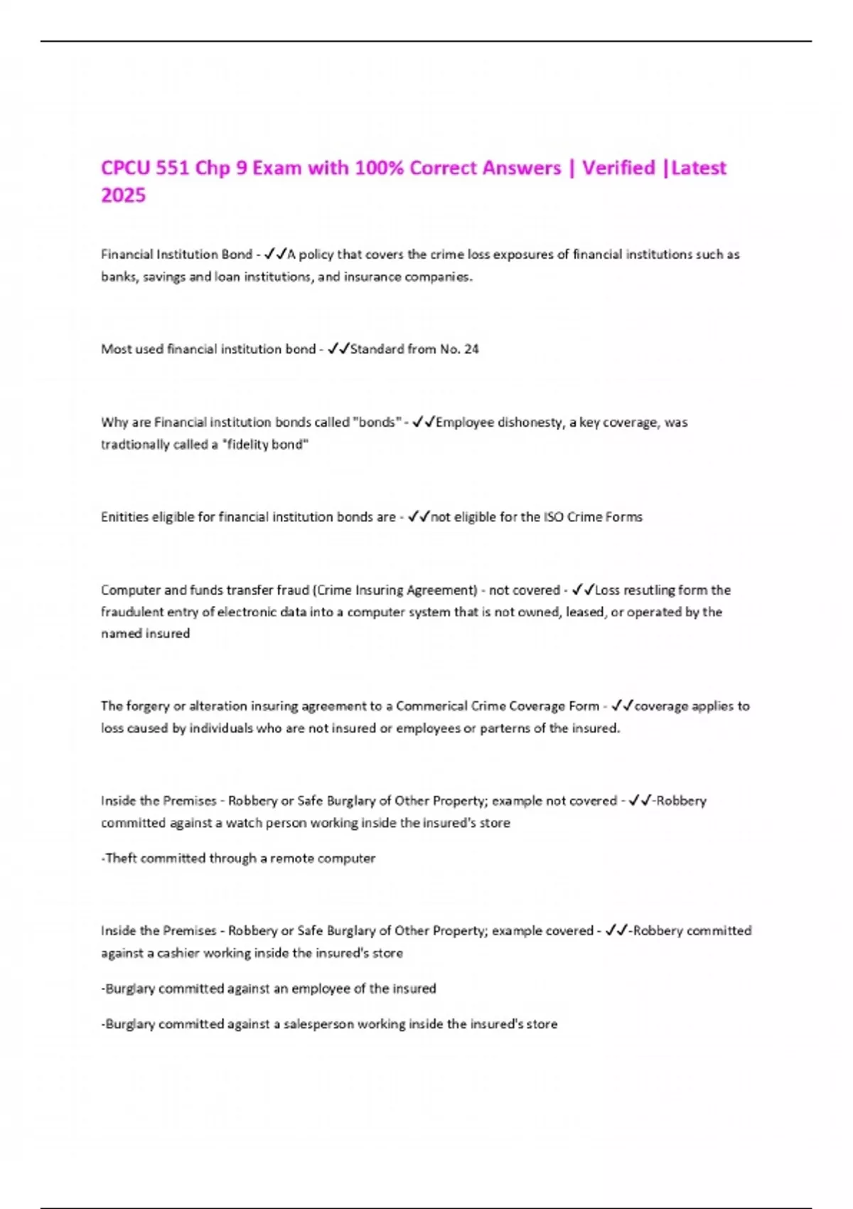 Package deal::: CPCU 551 Exams with 100% Correct Answers | Verified |Latest 2025/2026