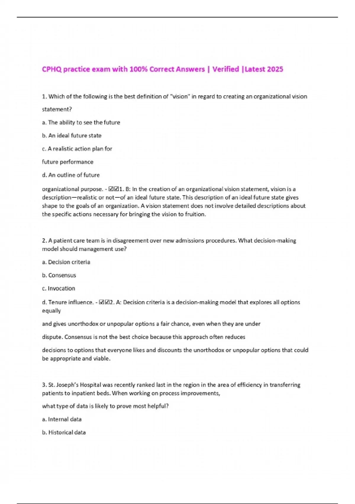 cphq practice exam with 100 correct answers ver