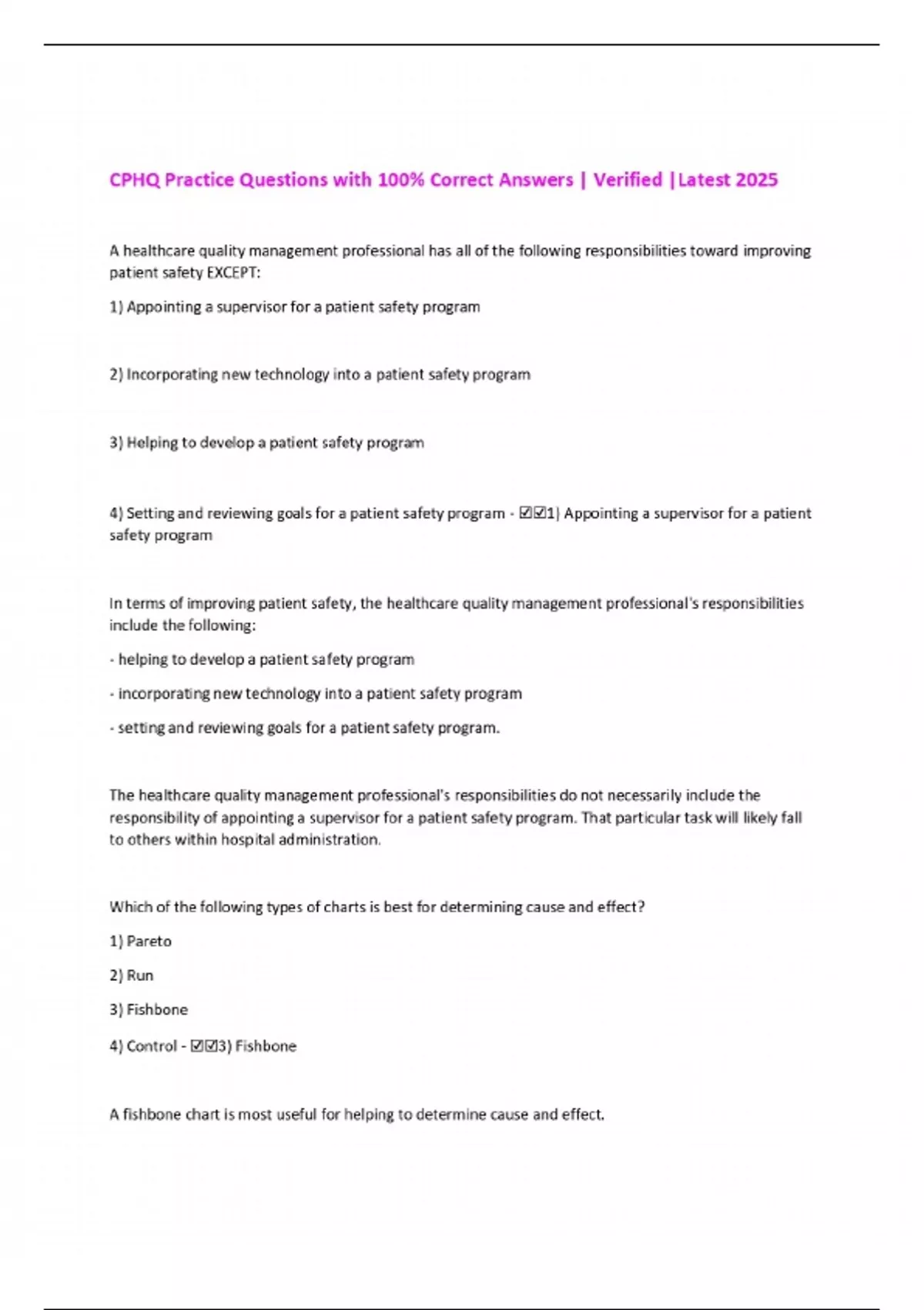 Package deal::: CPHQ Exams with 100% Correct Answers | Verified |Latest 2025/2026