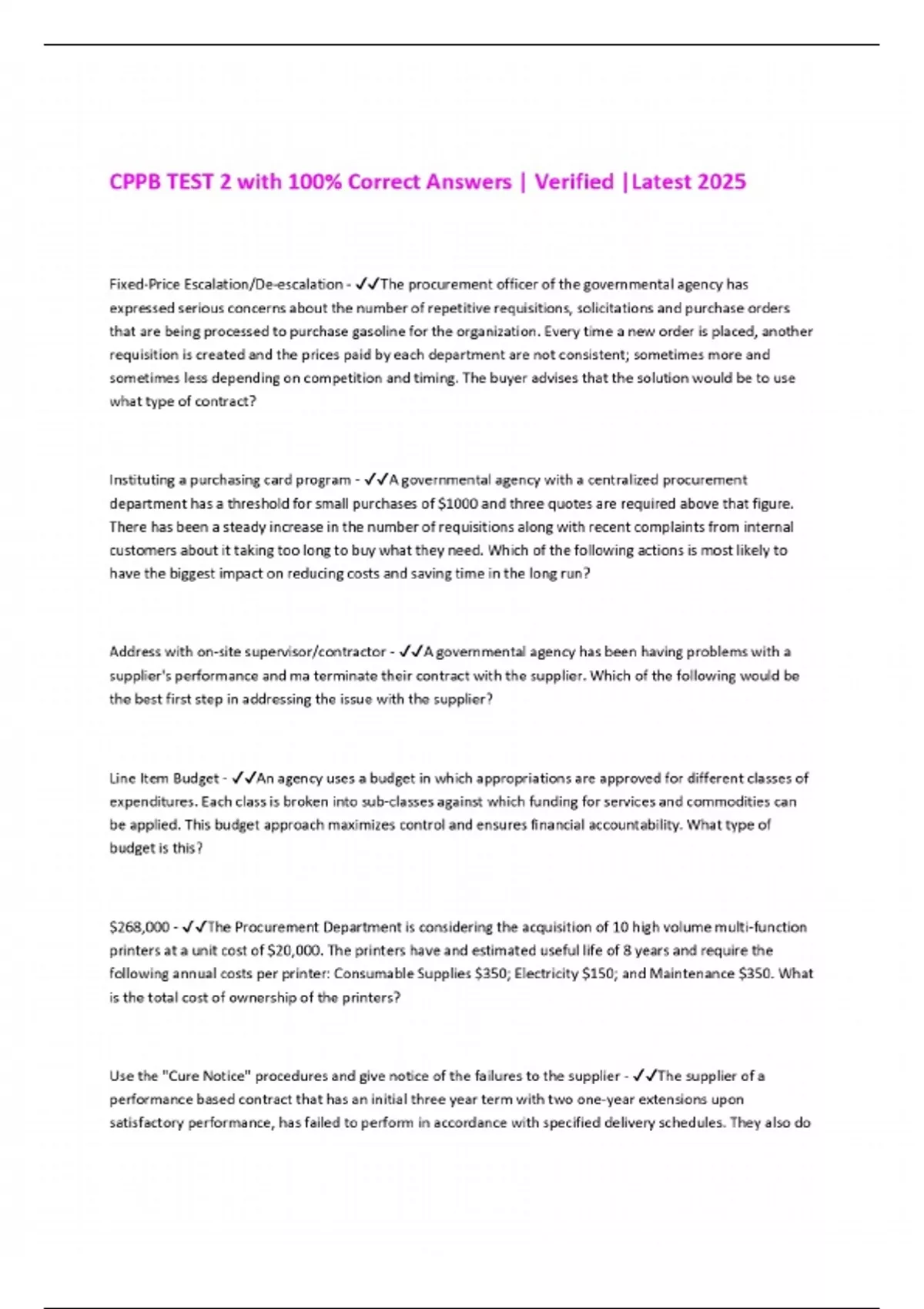 CPPB TEST 2 with 100% Correct Answers | Verified |Latest 2025
