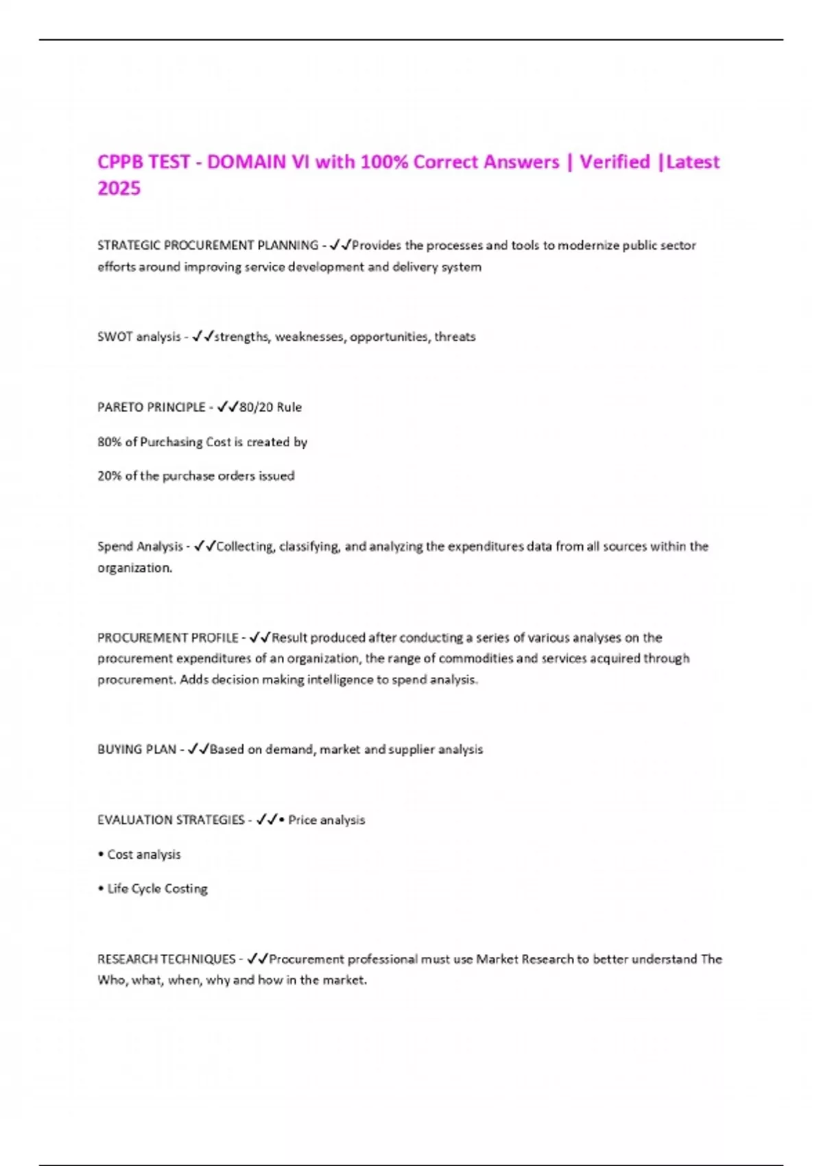 CPPB TEST - DOMAIN VI with 100% Correct Answers | Verified |Latest 2025