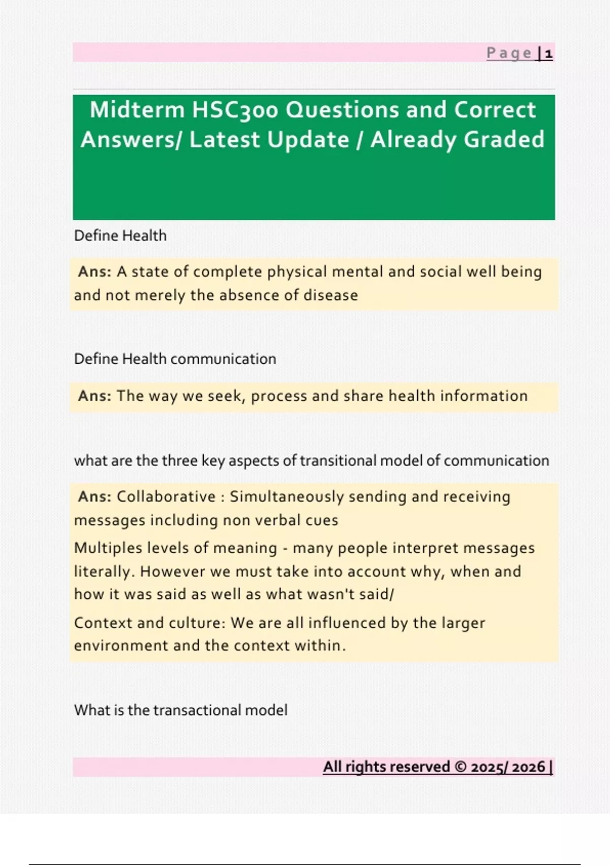 Midterm HSC300 Questions and Correct