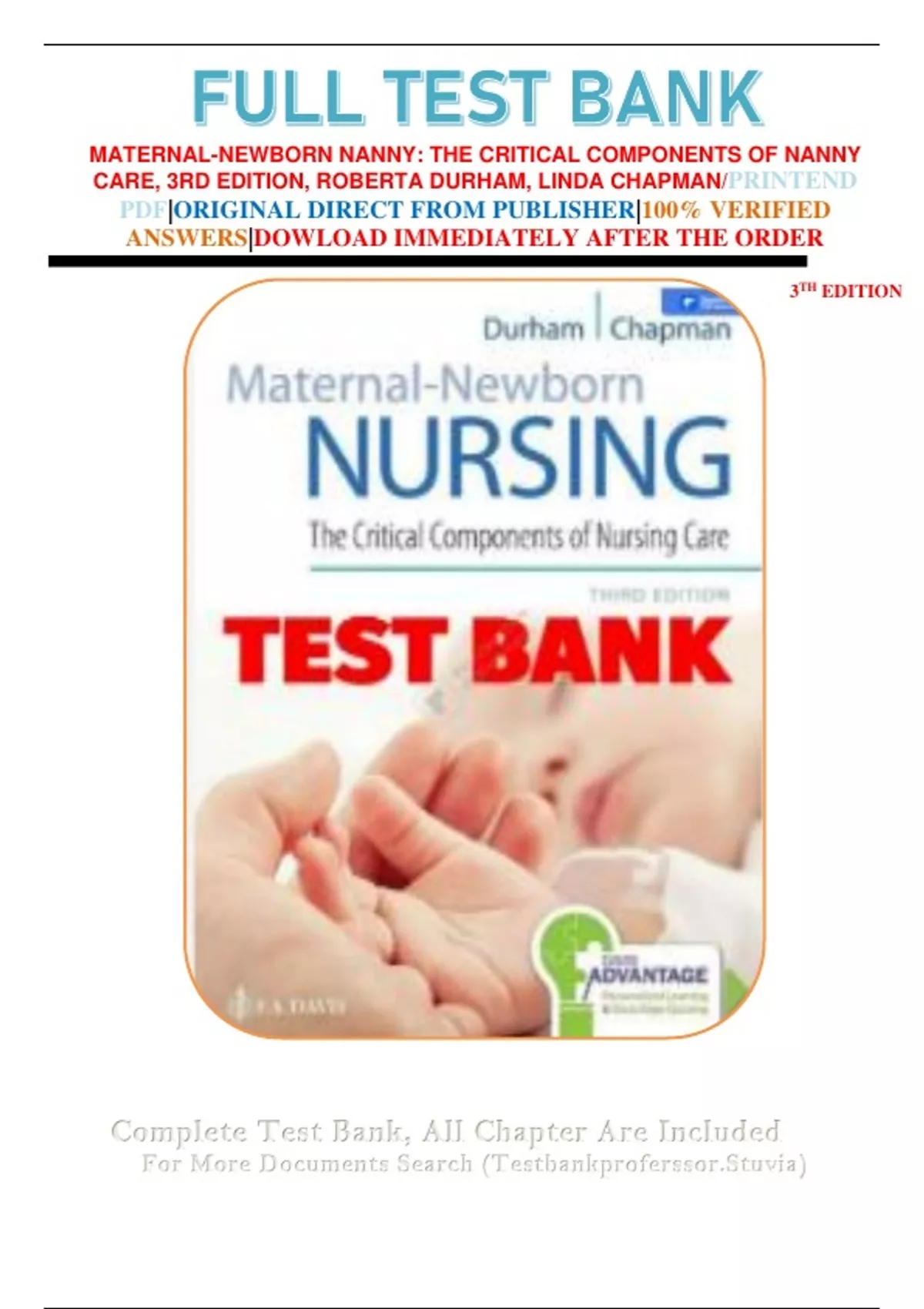 Maternal-Newborn Nanny Care (3rd Edition by Roberta Durham & Linda Chapman) – Verified Full Test Bank with 100% Accurate Answers for Clinical and Exam Success