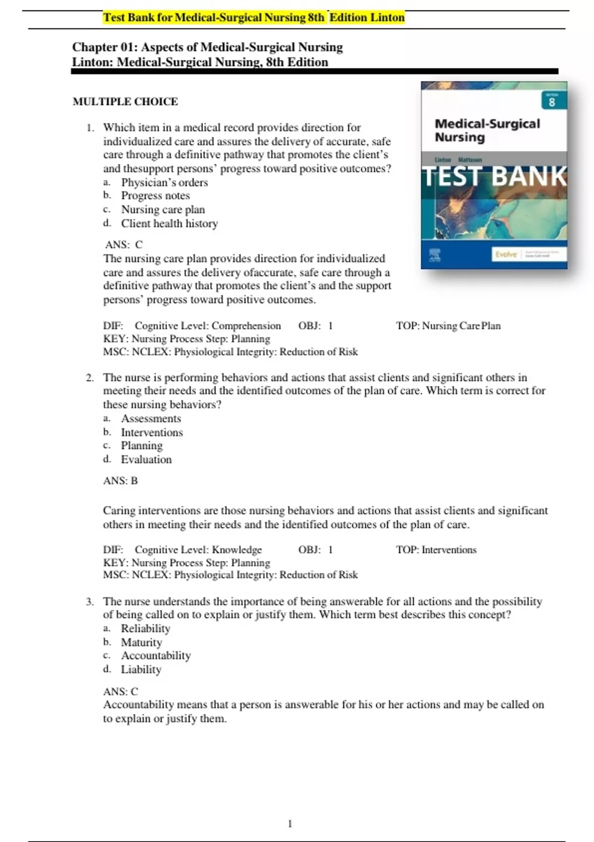 Linton: Medical-Surgical Nursing, 8th Edition