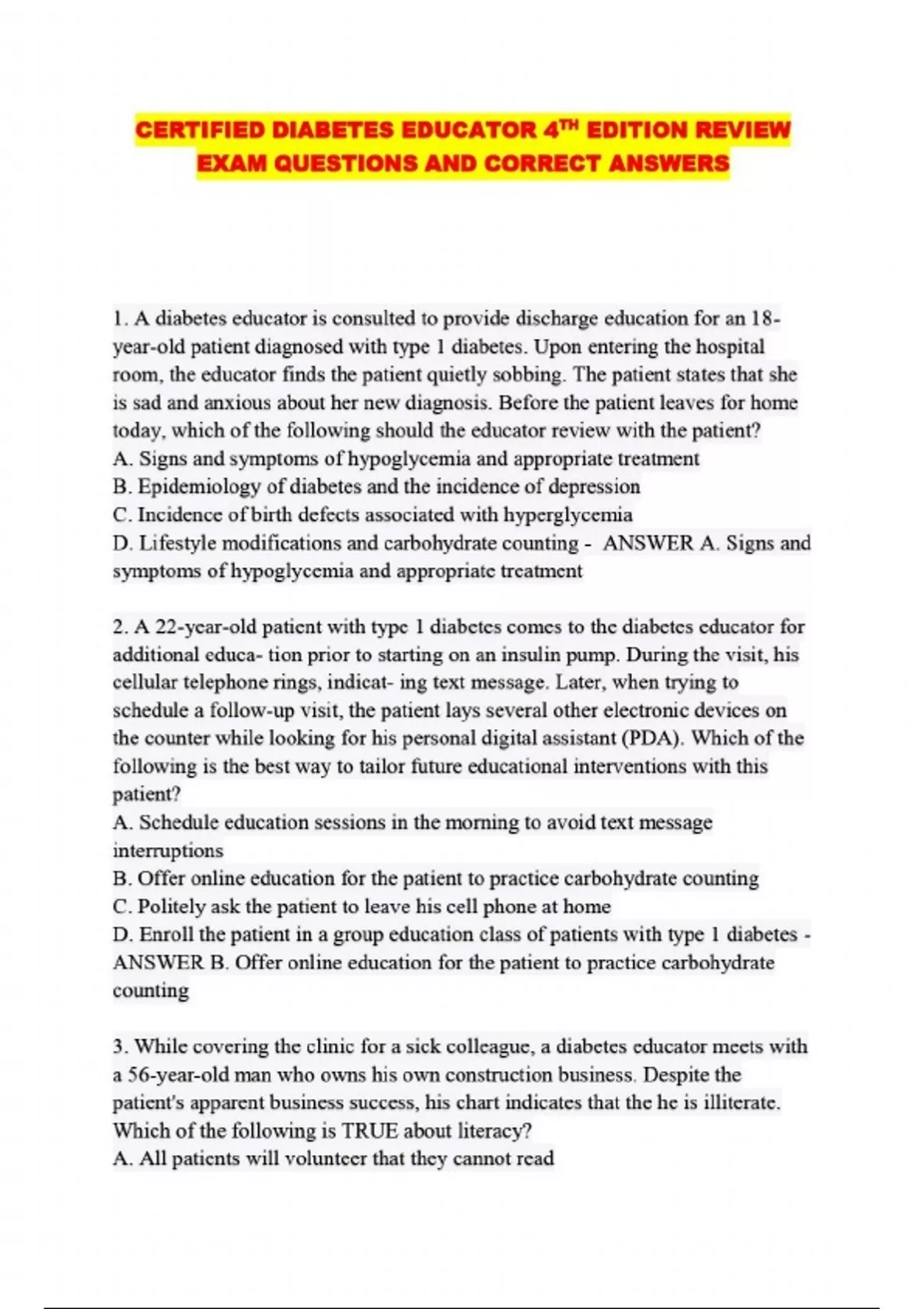 CERTIFIED DIABETES EDUCATOR 4TH EDITION REVIEW EXAM QUESTIONS AND CORRECT ANSWERS