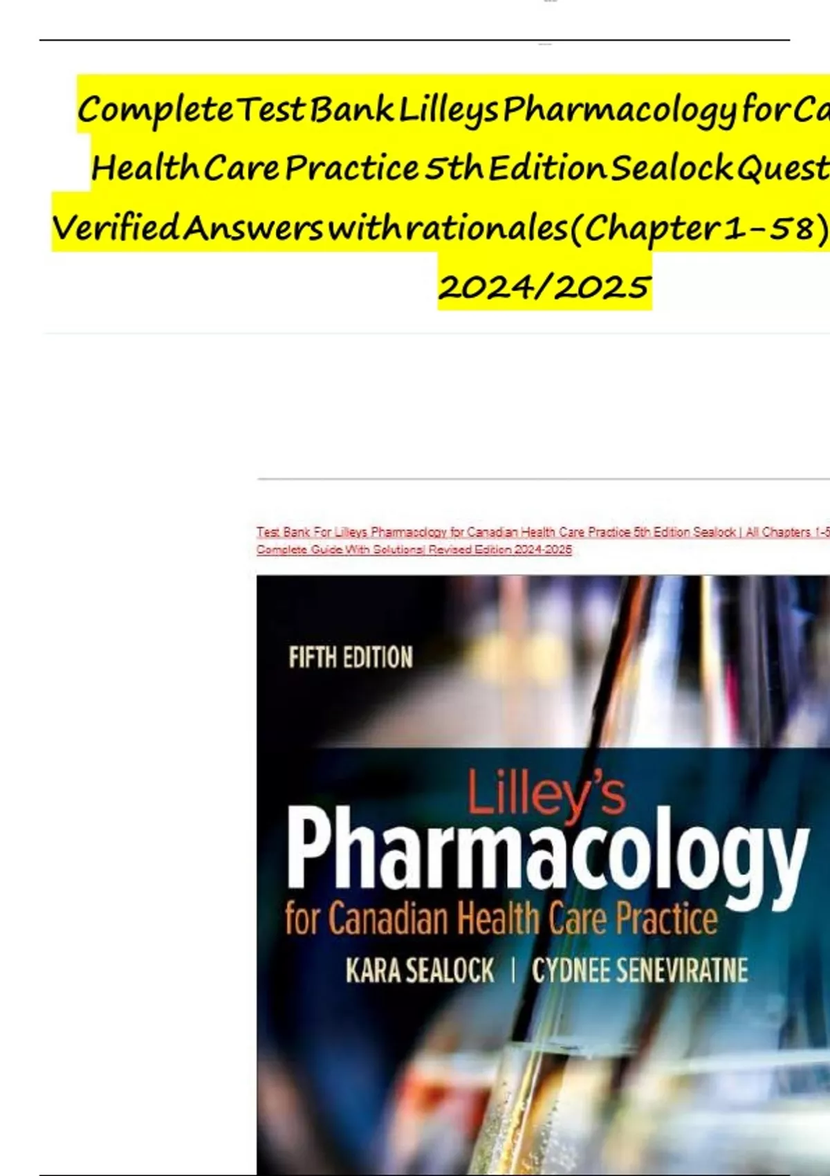 Test Bank For Lilleys Pharmacology for Canadian Health Care Practice 5th Edition Sealock | All Chapters 1-58| Complete Guide With Solutions| Revised Edition