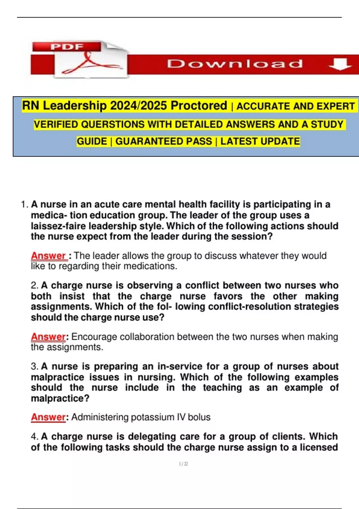 RN Leadership 2024/2025 Proctored | ACCURATE AND EXPERT VERIFIED QUERSTIONS WITH DETAILED ANSWERS AND A STUDY GUIDE | GUARANTEED PASS | LATEST UPDATERN Leadership 2024/2025 Proctored | ACCURATE AND EXPERT VERIFIED QUERSTIONS WITH DETAILED ANSWERS AND A STUDY GUIDE | GUARANTEED PASS | LATEST UPDATERN Leadership 2024/2025 Proctored | ACCURATE AND EXPERT VERIFIED QUERSTIONS WITH DETAILED ANSWERS AND A STUDY GUIDE | GUARANTEED PASS | LATEST UPDATERN Leadership 2024/2025 Proctored | ACCURATE AND EXPERT VERIFIED QUERSTIONS WITH DETAILED ANSWERS AND A STUDY GUIDE | GUARANTEED PASS | LATEST UPDATERN Leadership 2024/2025 Proctored | ACCURATE AND EXPERT VERIFIED QUERSTIONS WITH DETAILED ANSWERS AND A STUDY GUIDE | GUARANTEED PASS | LATEST UPDATERN Leadership 2024/2025 Proctored | ACCURATE AND EXPERT VERIFIED QUERSTIONS WITH DETAILED ANSWERS AND A STUDY GUIDE | GUARANTEED PASS | LATEST UPDATERN Leadership 2024/2025 Proctored | ACCURATE AND EXPERT VERIFIED QUERSTIONS WITH DETAILED ANSWERS AND A STUDY GUIDE | GUARANTEED PASS | LATEST UPDATERN Leadership 2024/2025 Proctored | ACCURATE AND EXPERT VERIFIED QUERSTIONS WITH DETAILED ANSWERS AND A STUDY GUIDE | GUARANTEED PASS | LATEST UPDATE