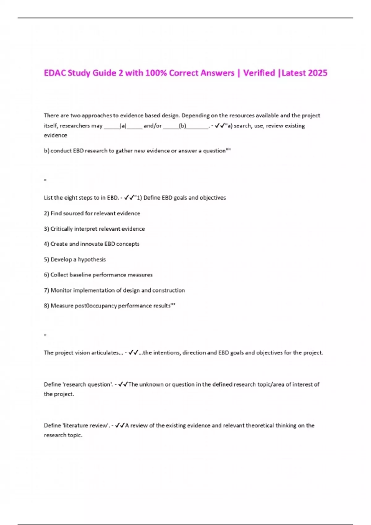 EDAC Study Guide 2 with 100% Correct Answers | Verified |Latest 2025