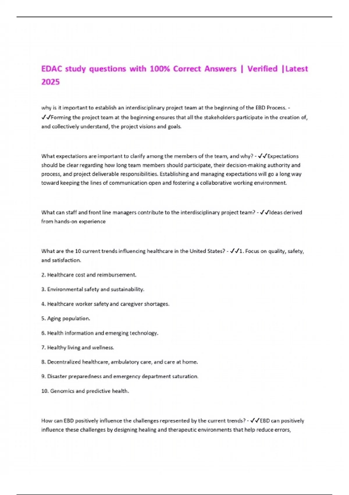 EDAC study questions with 100% Correct Answers | Verified |Latest 2025