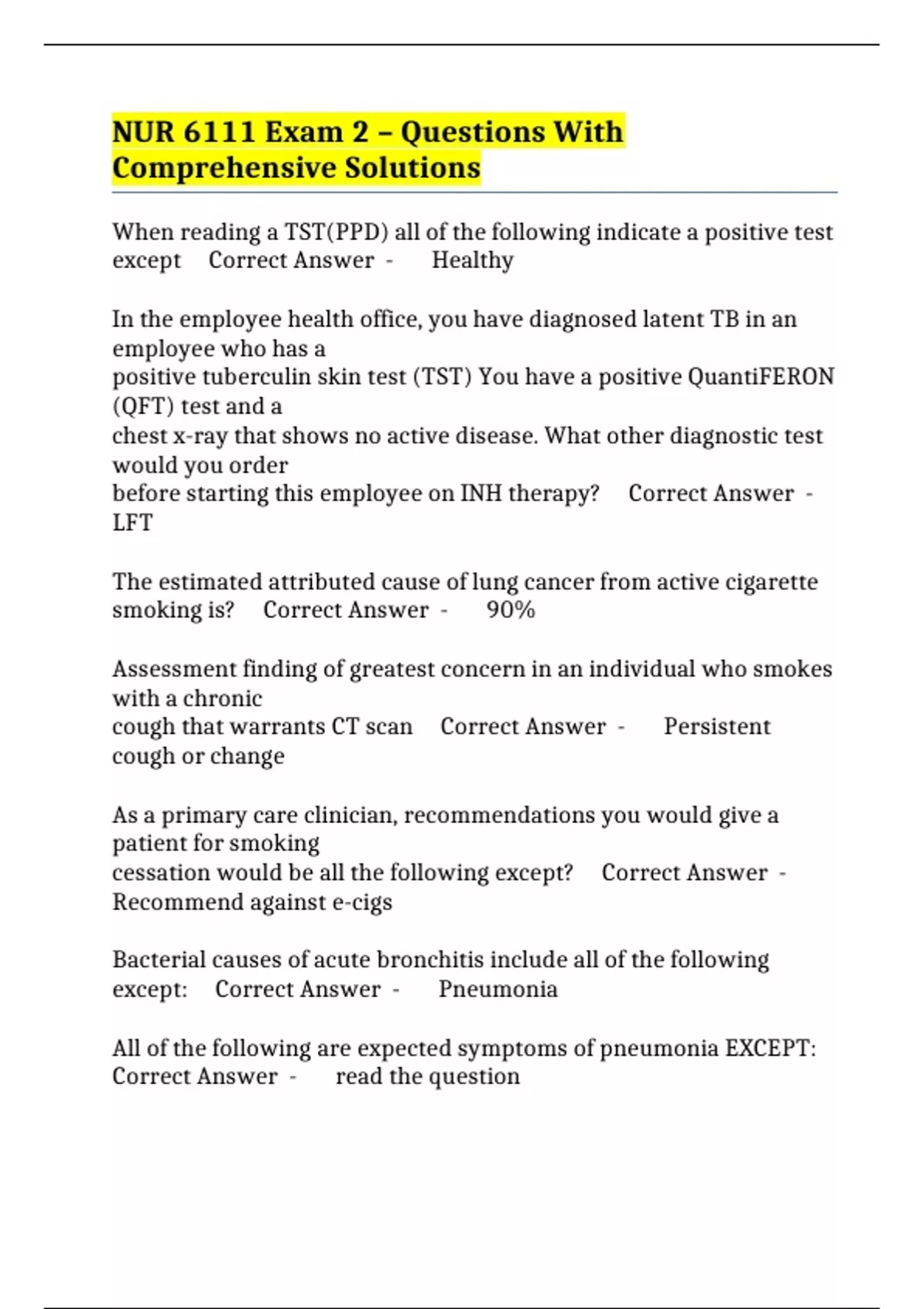 before starting this employee on INH therapy? Correct Answer -