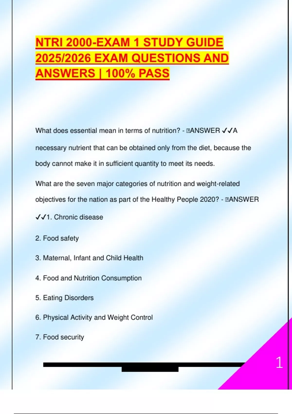 NTRI 2000-EXAM 1 STUDY GUIDE 2025/2026 EXAM QUESTIONS AND ANSWERS | 100% PASS