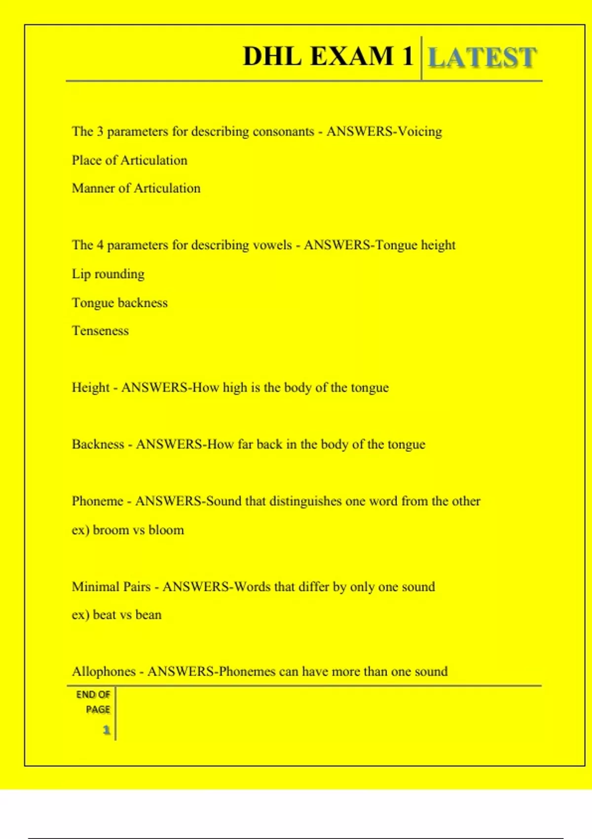 , DHL EXAM 1 LATEST