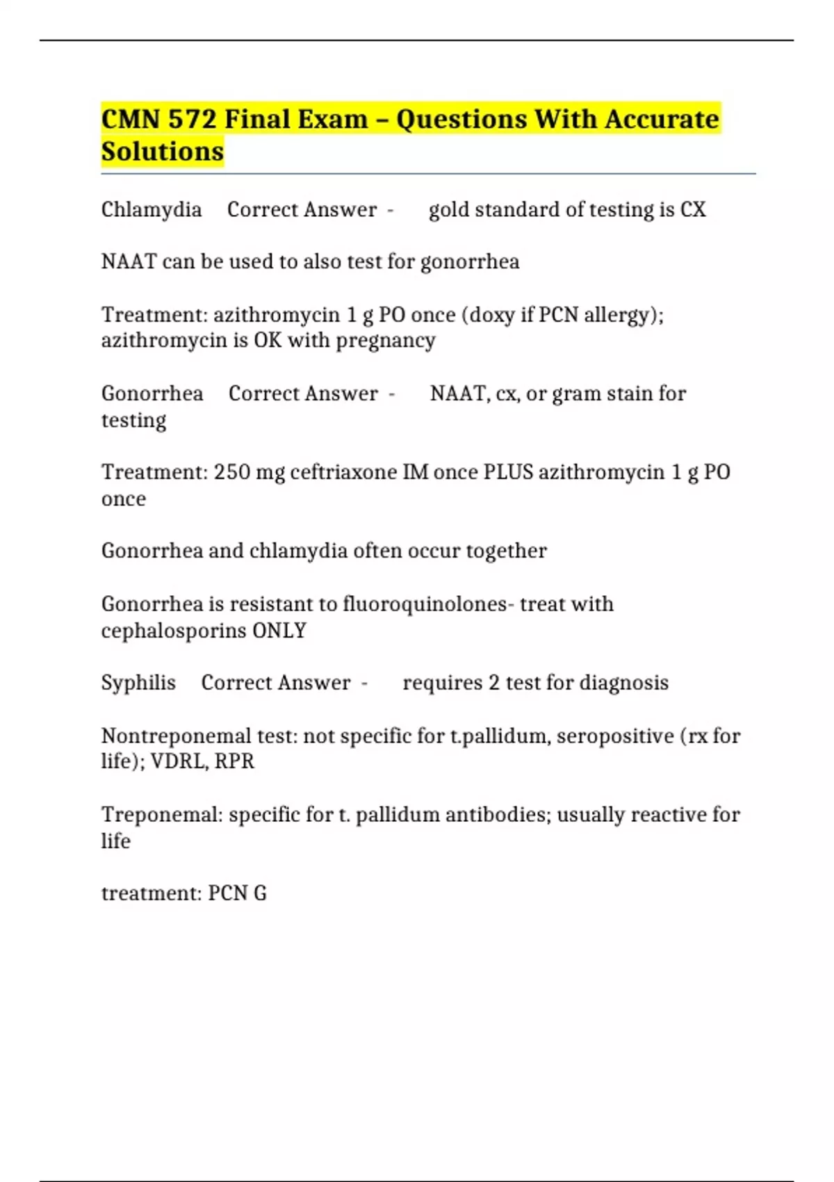 Gonorrhea Correct Answer - NAAT, cx, or gram stain for