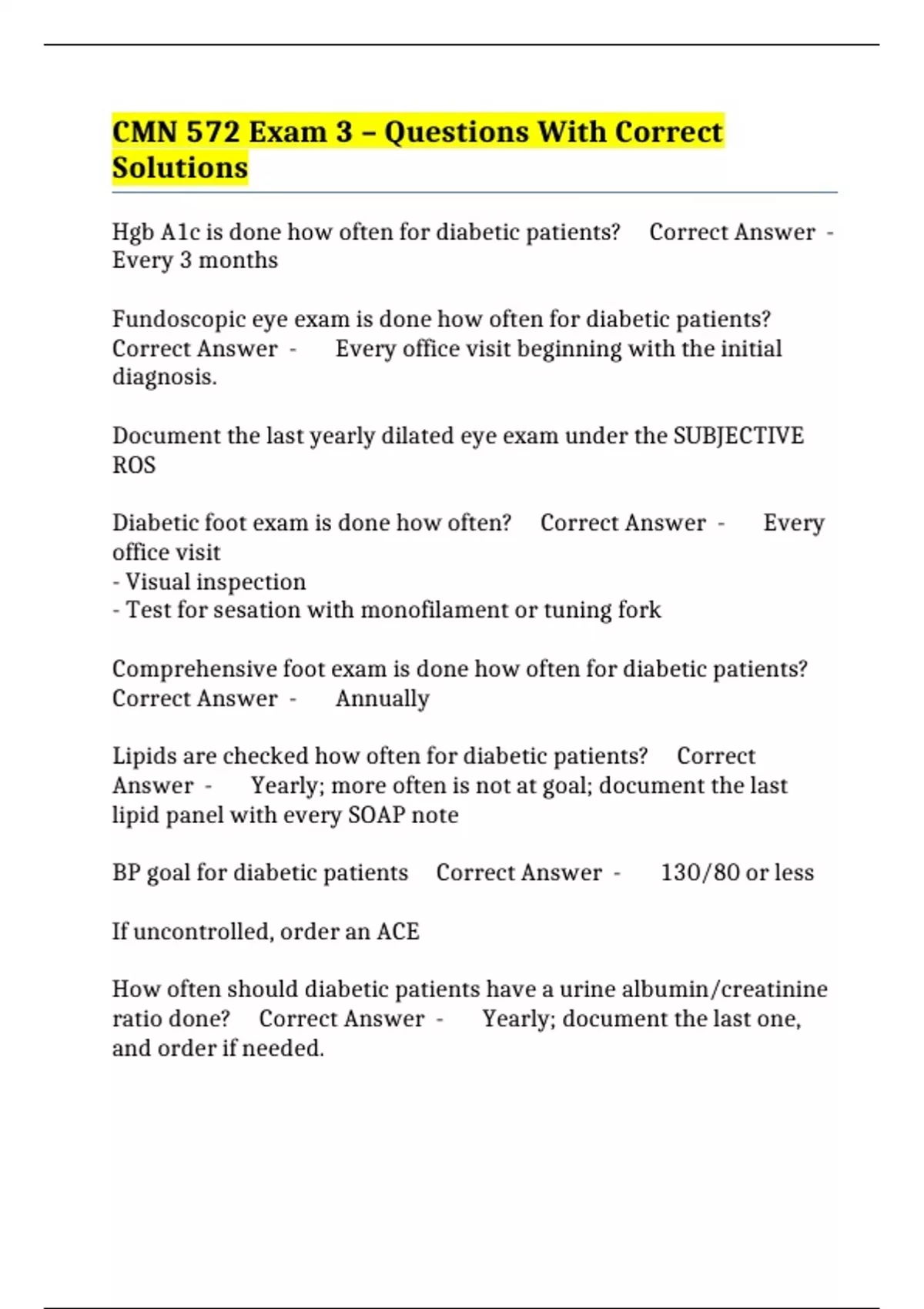 Hgb A1c is done how often for diabetic patients? Correct Answer -
