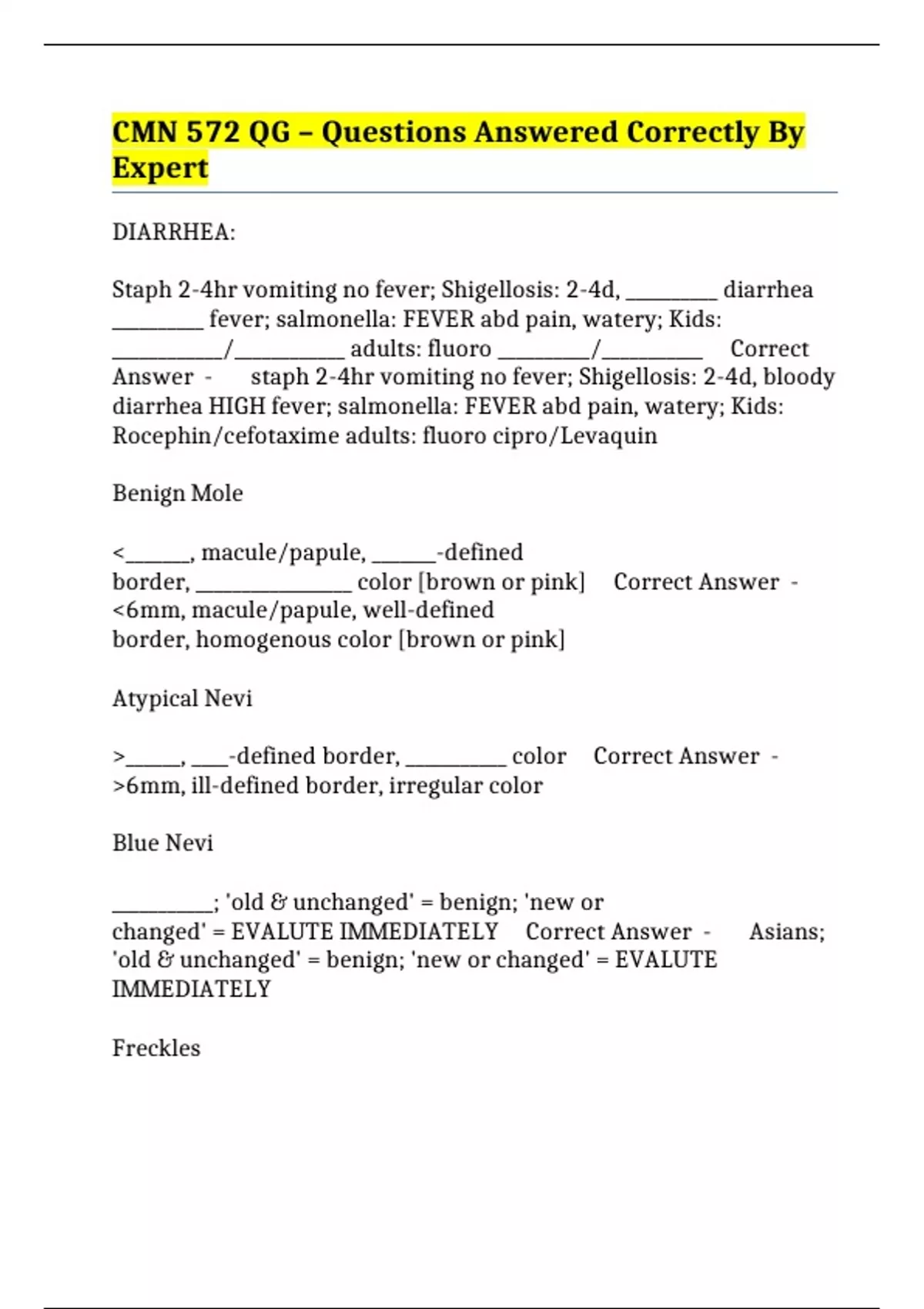 __________ fever; salmonella: FEVER abd pain, watery; Kids: