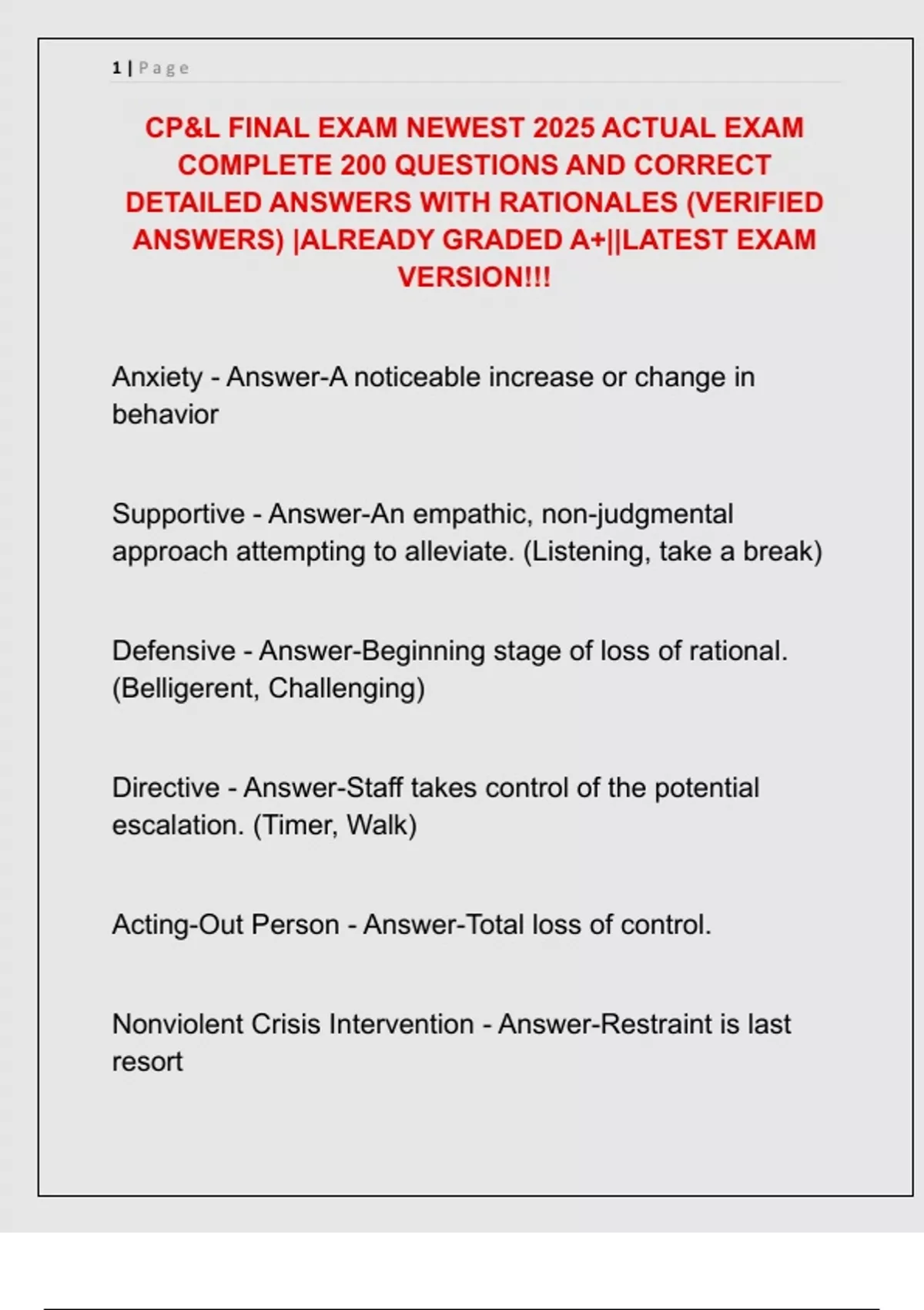 Nonviolent Crisis Intervention - Answer-Restraint is last