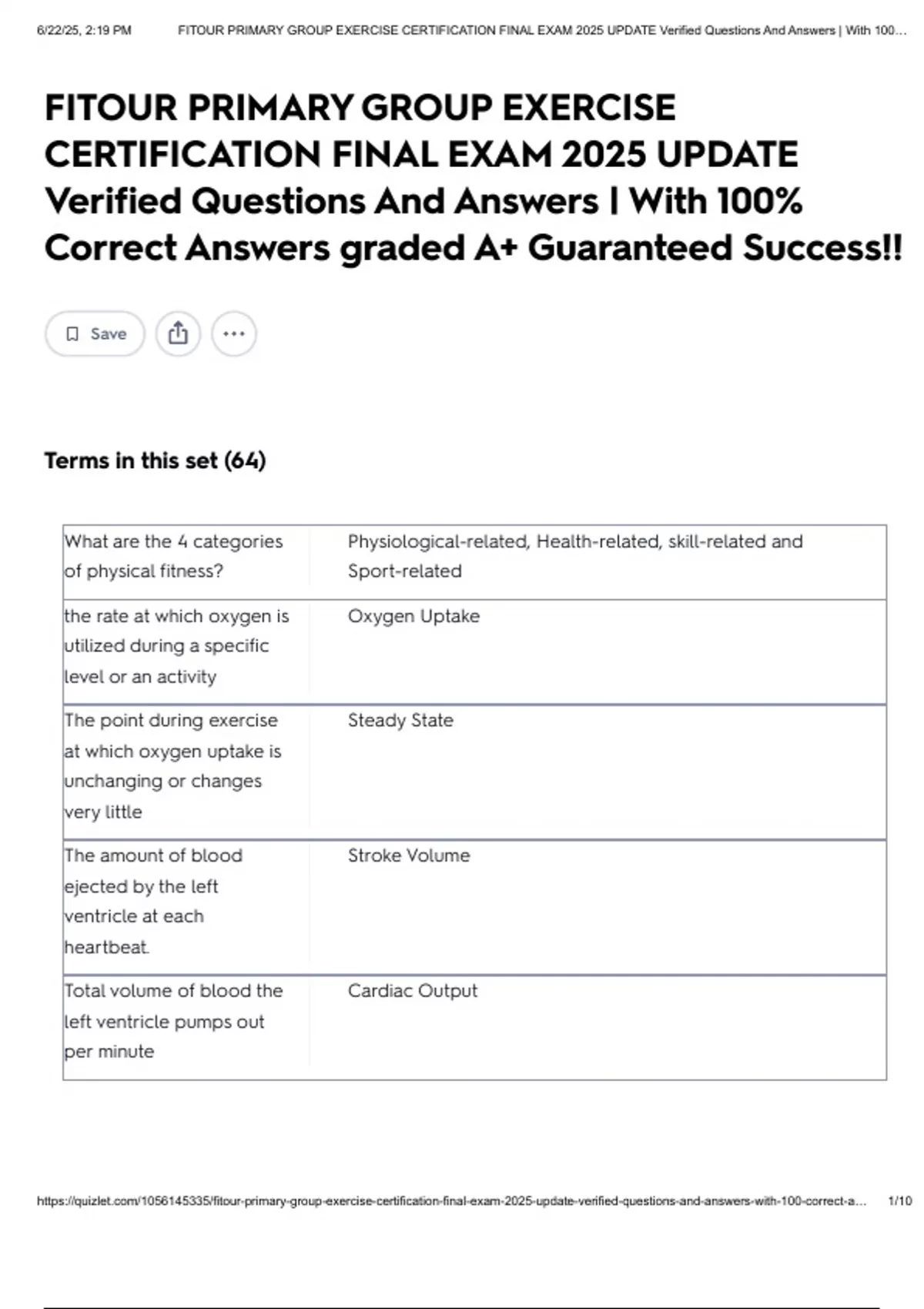, 6/22/25, 2:19 PM FITOUR PRIMARY GROUP EXERCISE CERTIFICATION FINAL EXAM 2025 UPDATE Verified Questions And Answers | With 100…