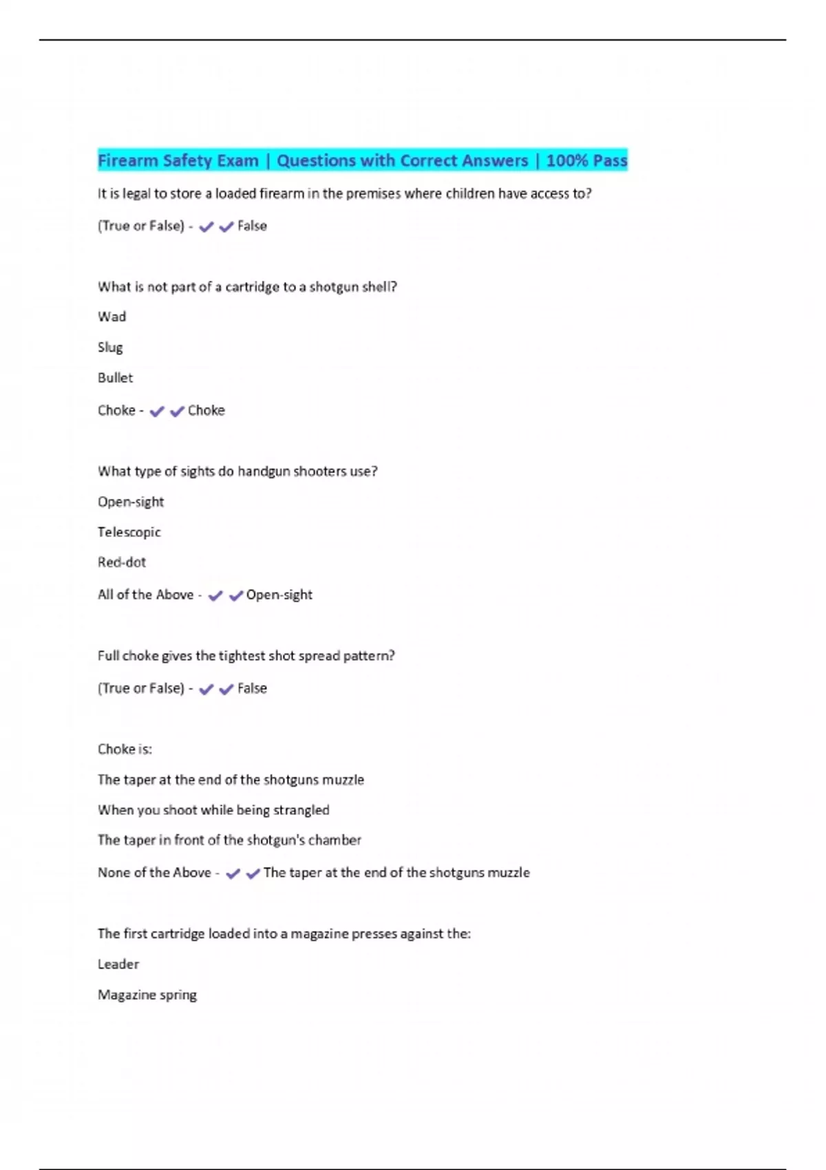 Firearm Safety Exam | Questions with Correct Answers | 100% Pass