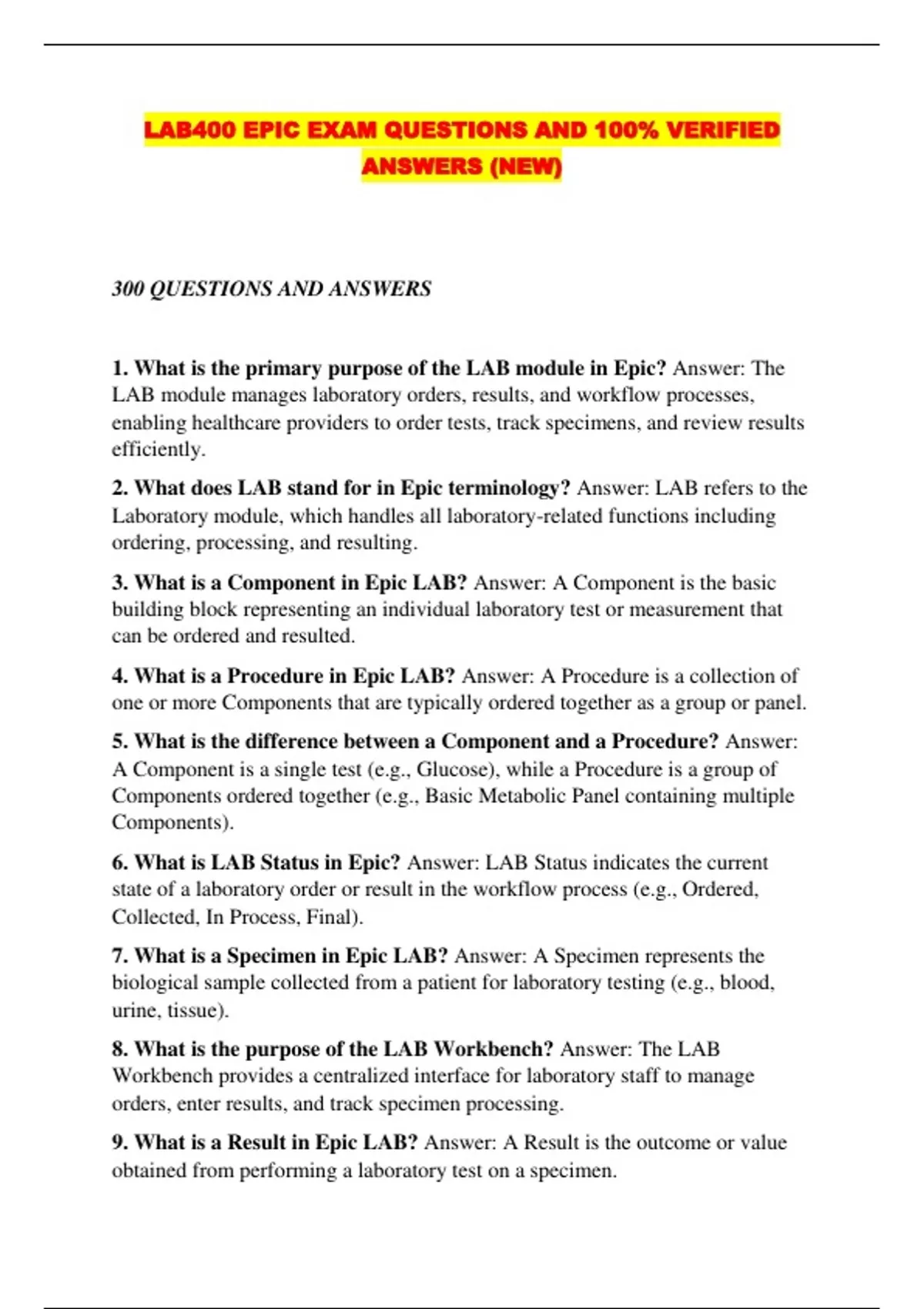 LAB400 EPIC EXAM QUESTIONS AND 100% VERIFIED ANSWERS (NEW)