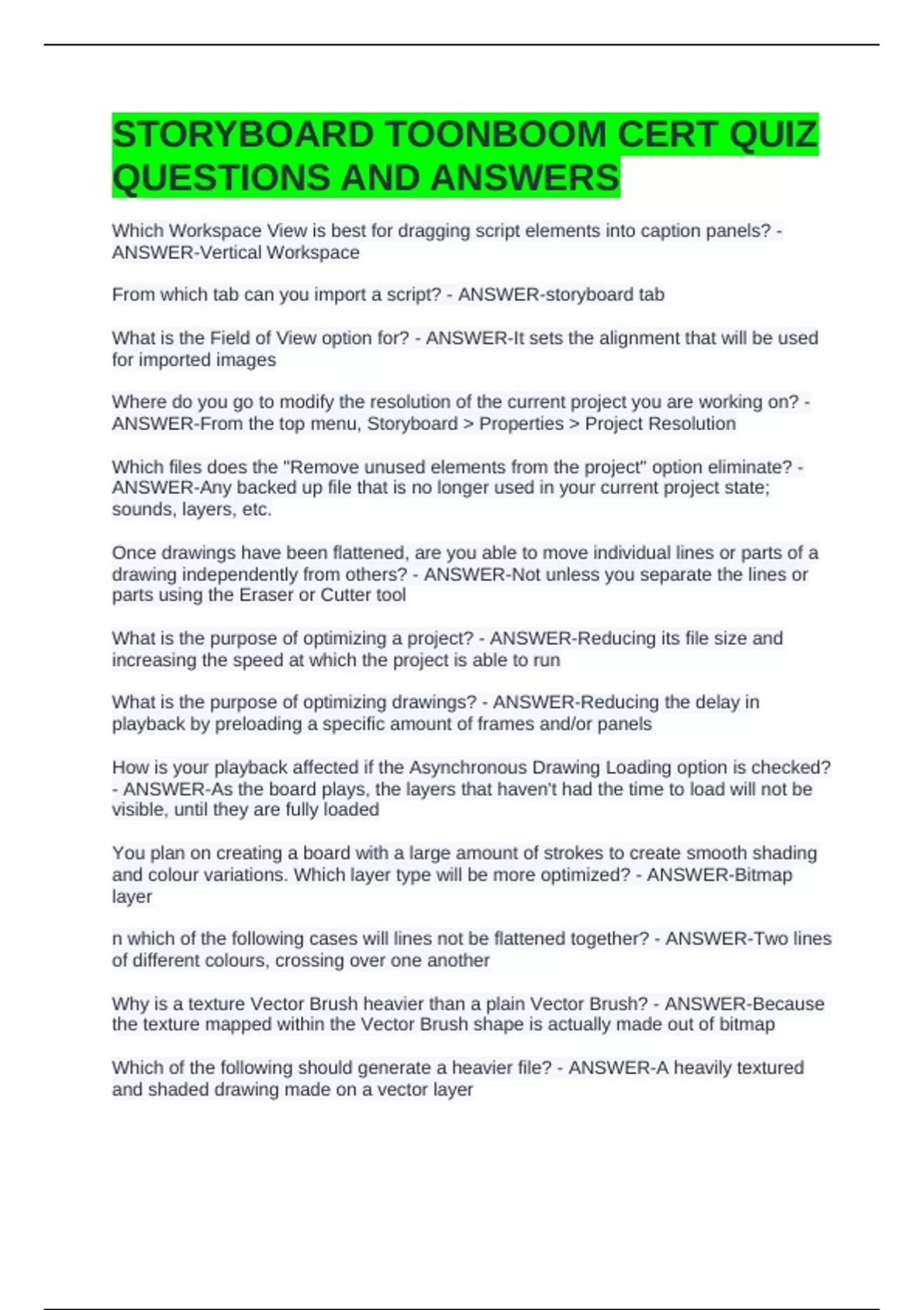 STORYBOARD TOONBOOM CERT QUIZ