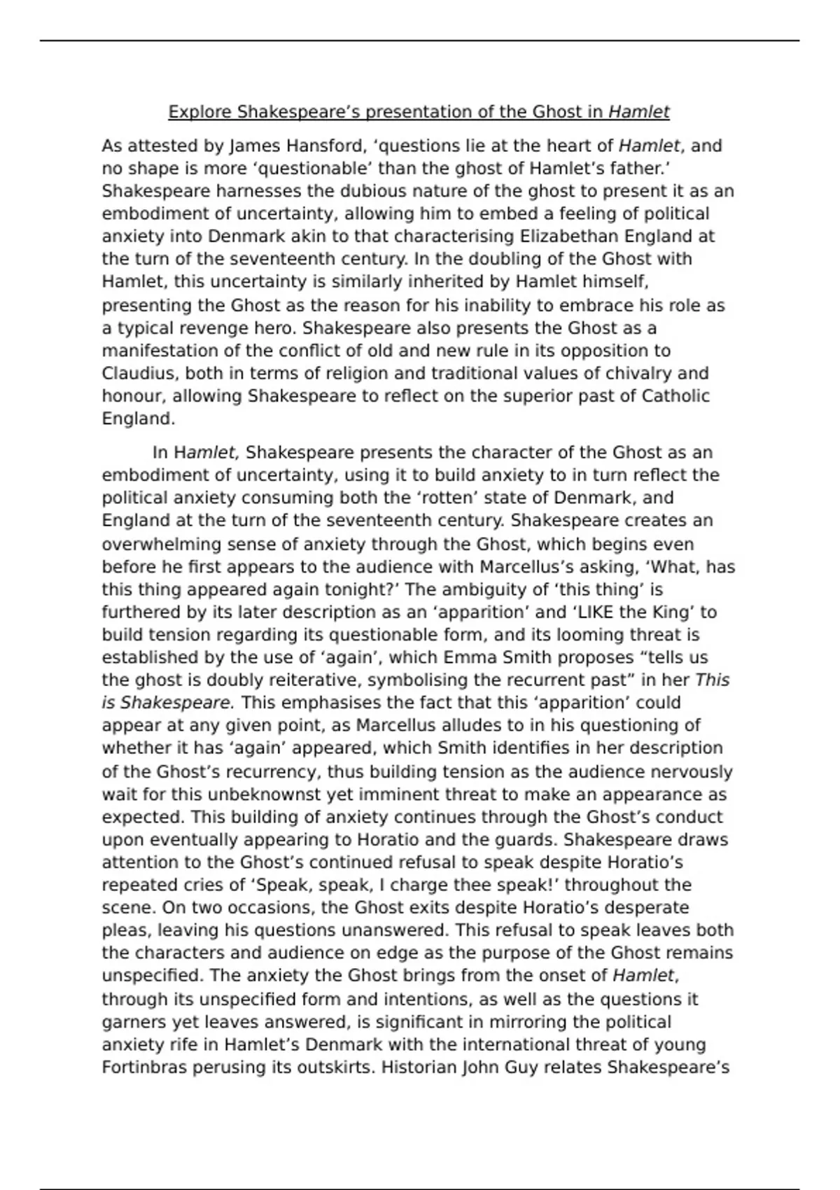 In Hamlet, Shakespeare presents the character of the Ghost as an