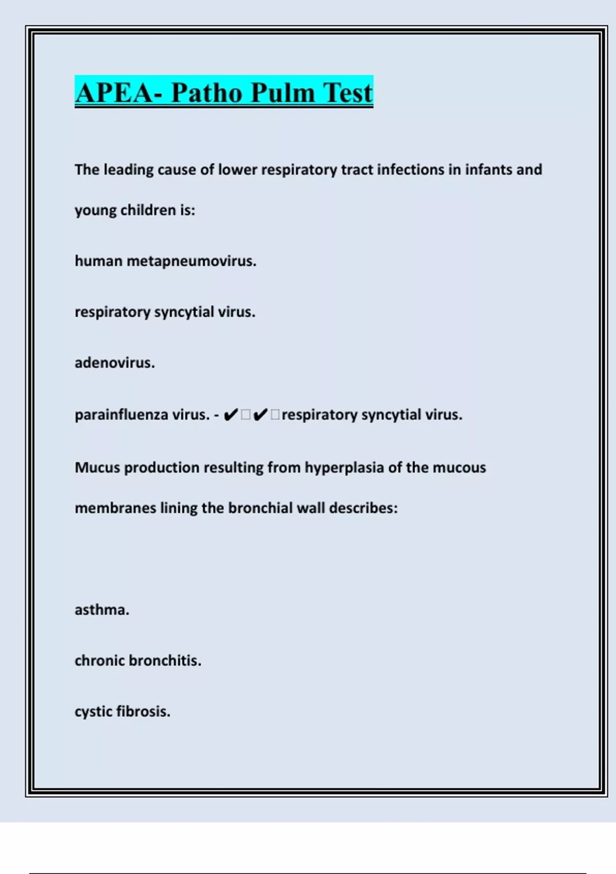 APEA- Patho Pulm Test Expert Q&A for Total Exam Domination