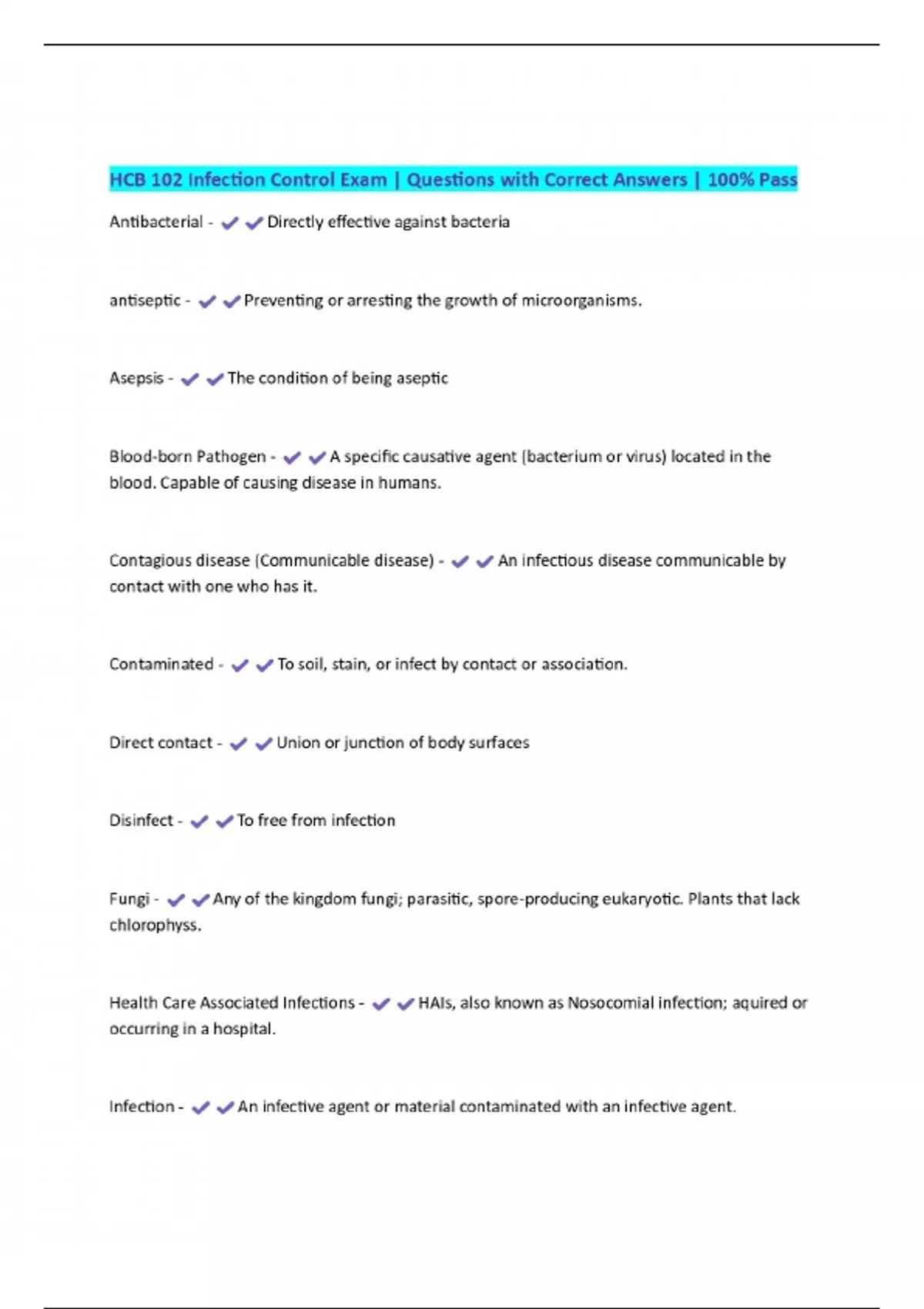 HCB 102 Infection Control Exam | Questions with Correct Answers | 100% Pass