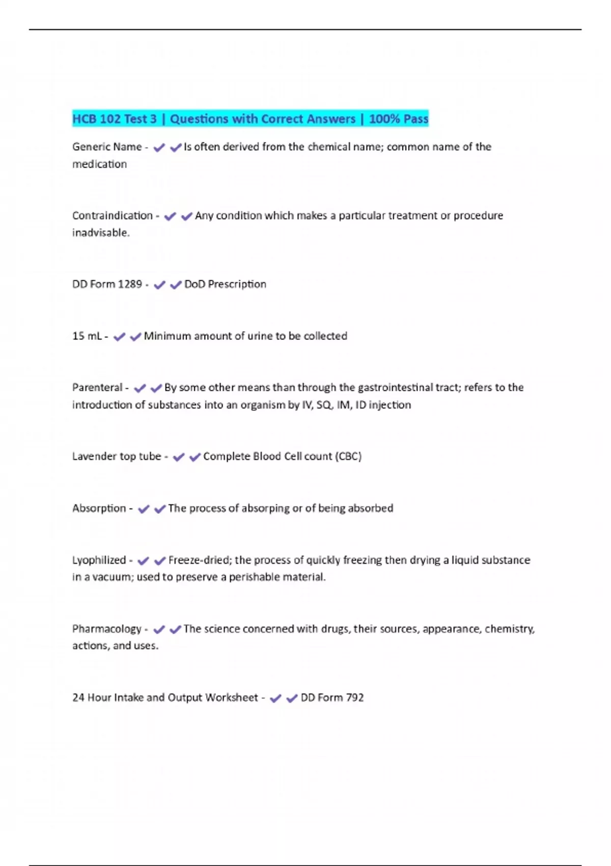 HCB 102 Test 3 | Questions with Correct Answers | 100% Pass