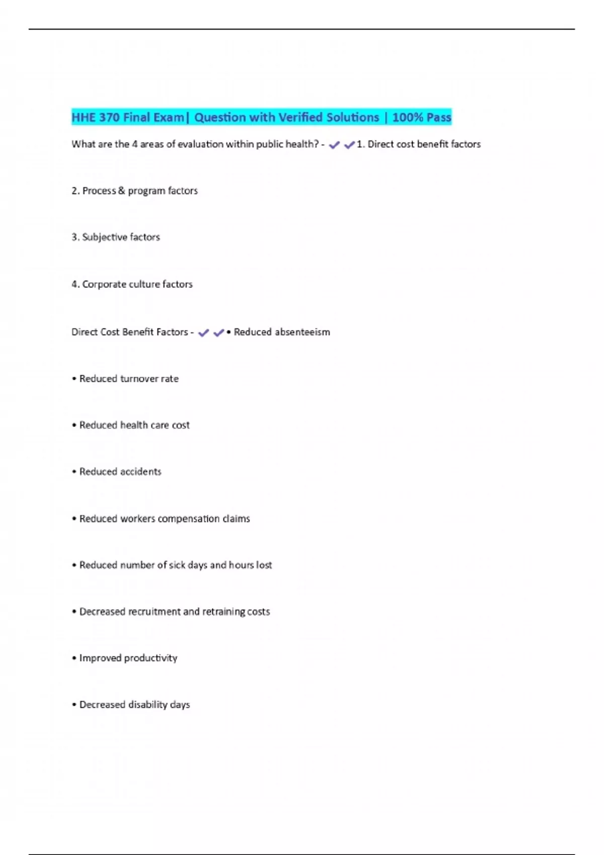 HHE 370 Final Exam| Question with Verified Solutions | 100% Pass