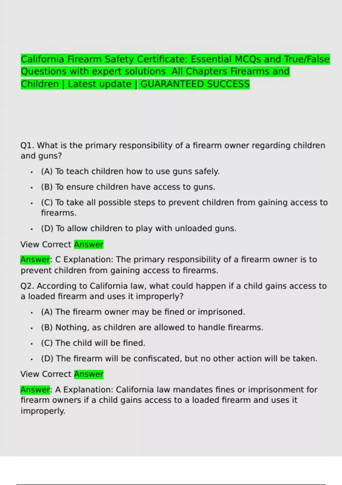 California Firearm Safety Certificate: Essential MCQs and True/False