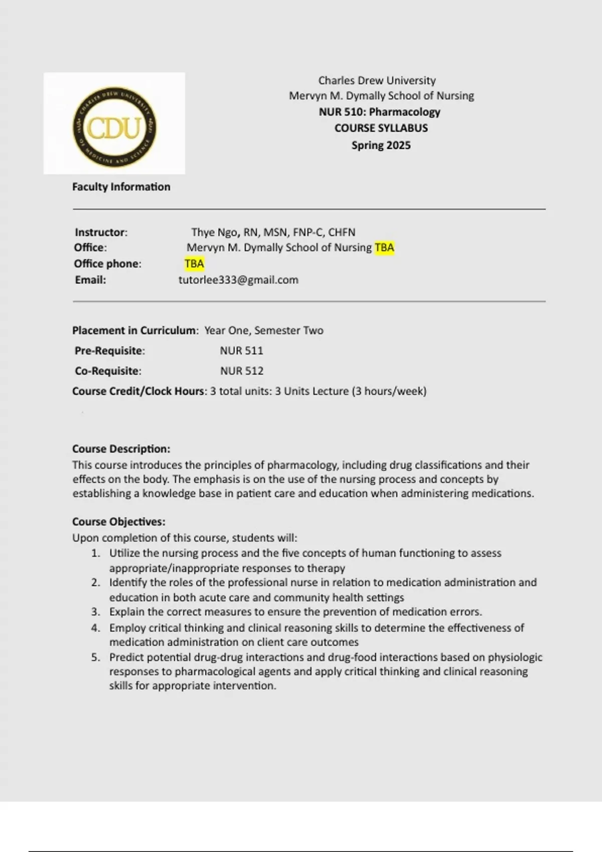 Office: Mervyn M. Dymally School of Nursing TBA