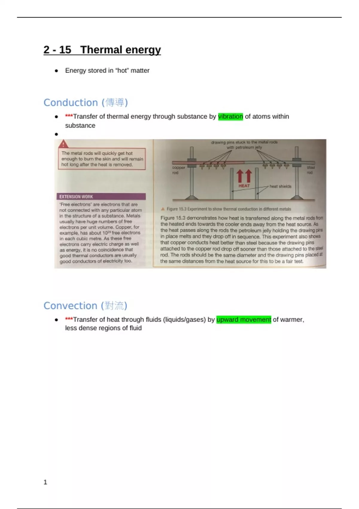 ● ***Transfer of thermal energy through substance by vibration of atoms within